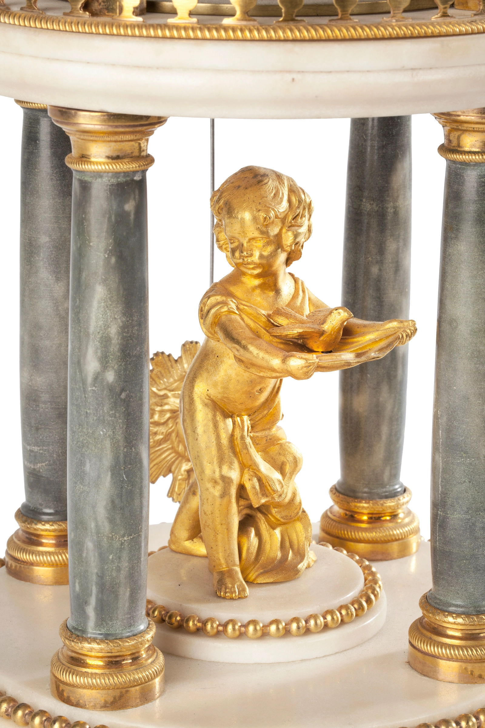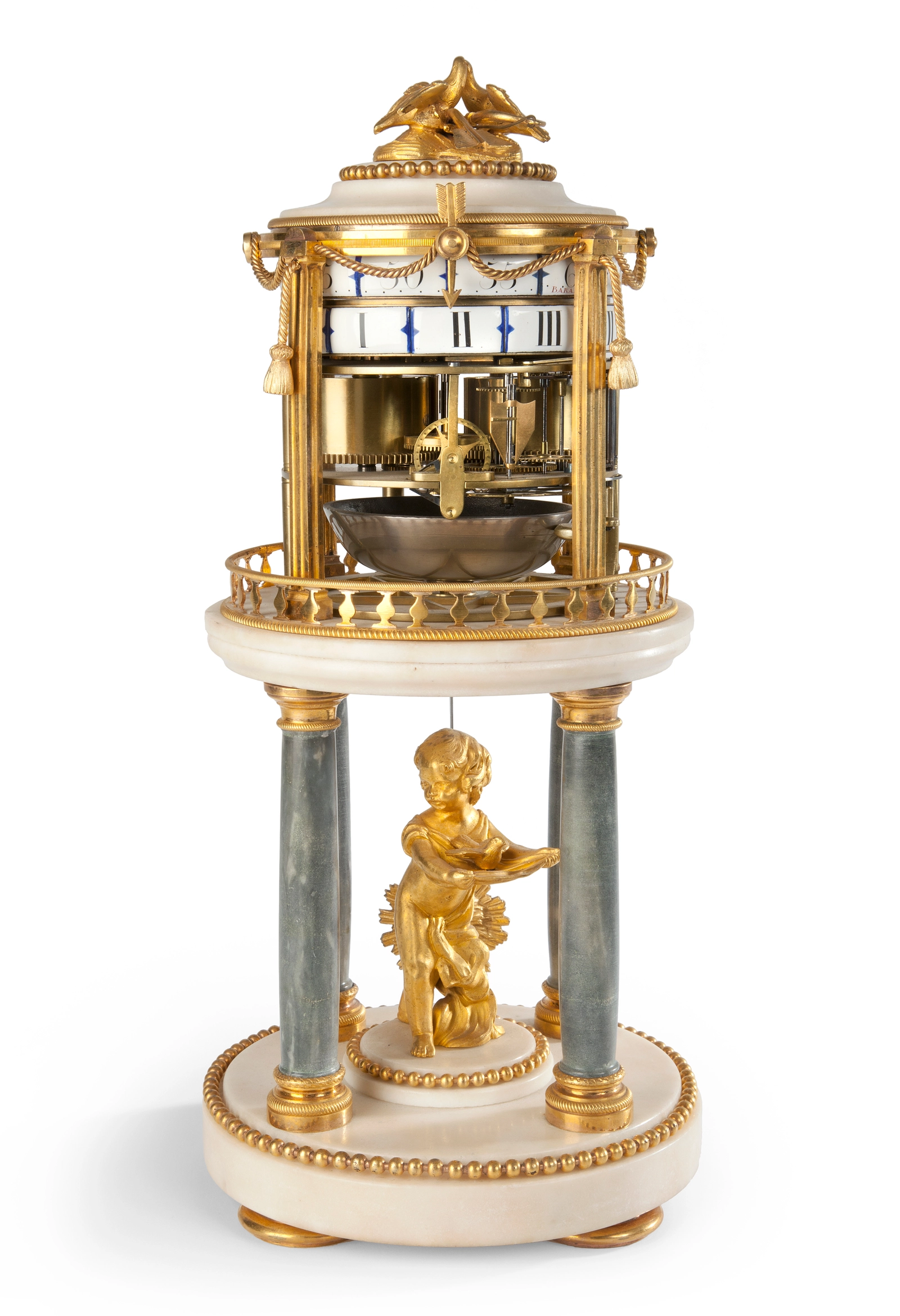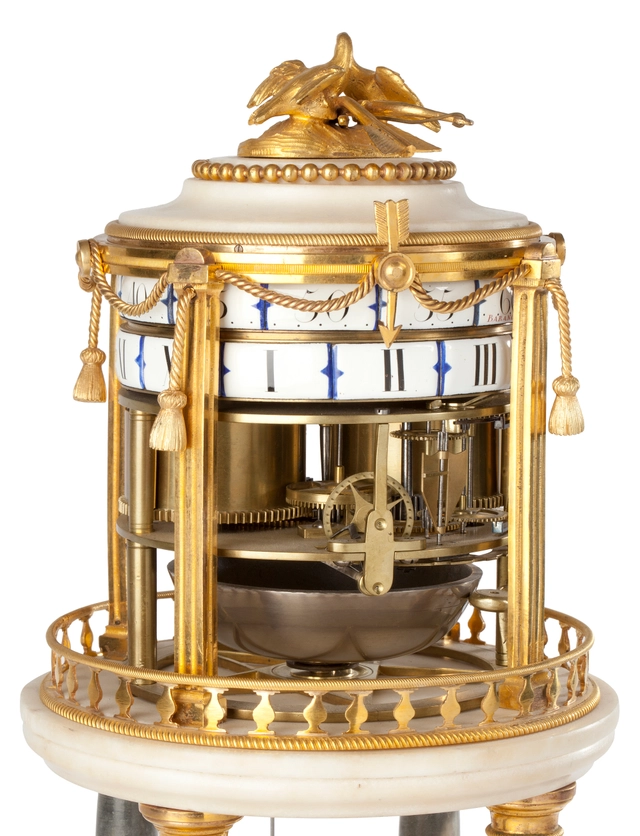 Een Franse messing tafelklok met Sèvres panelen en eeuwigdurende kalender, omstreeks 1880