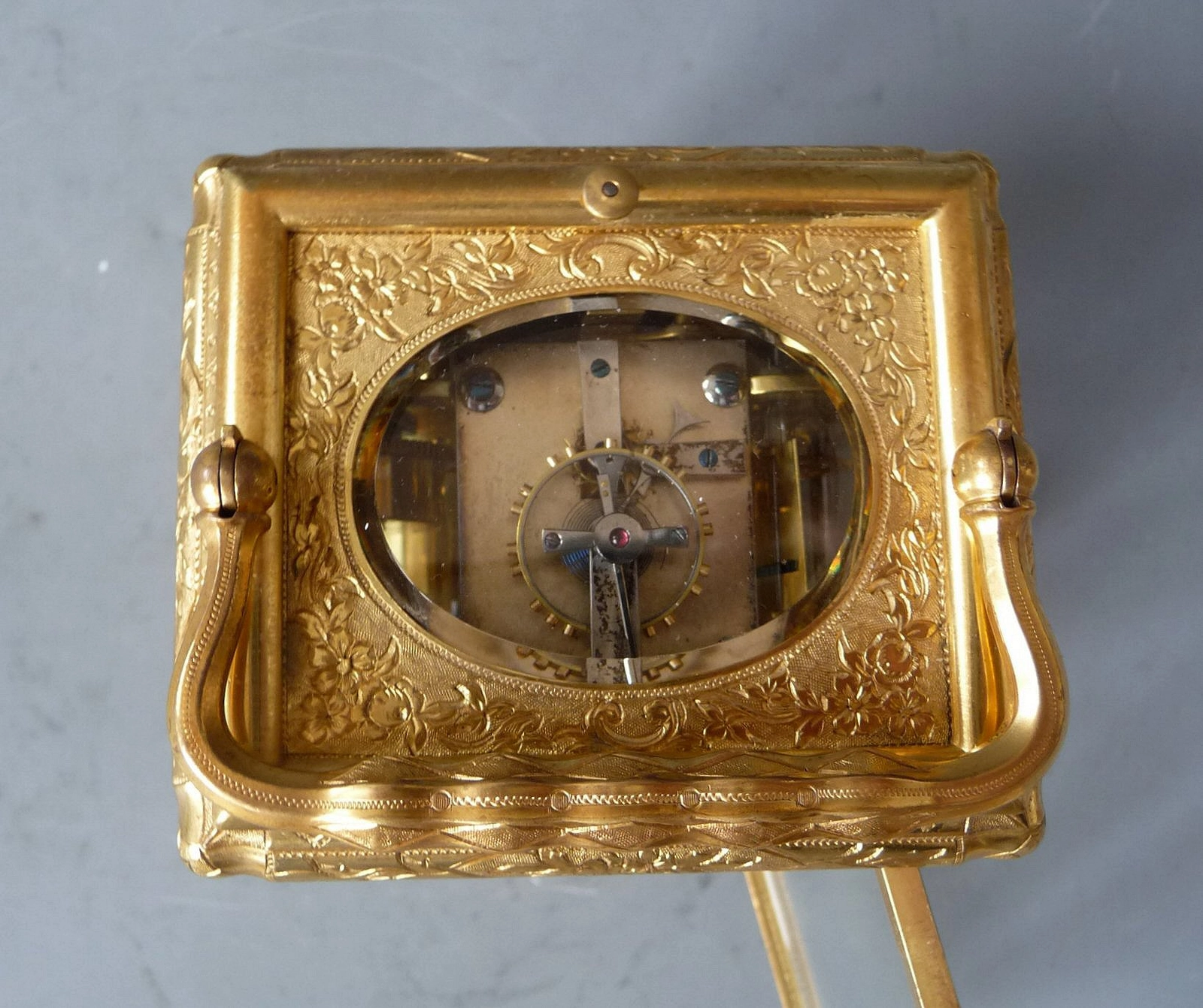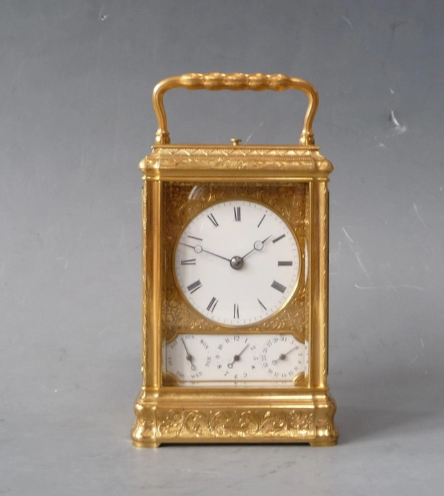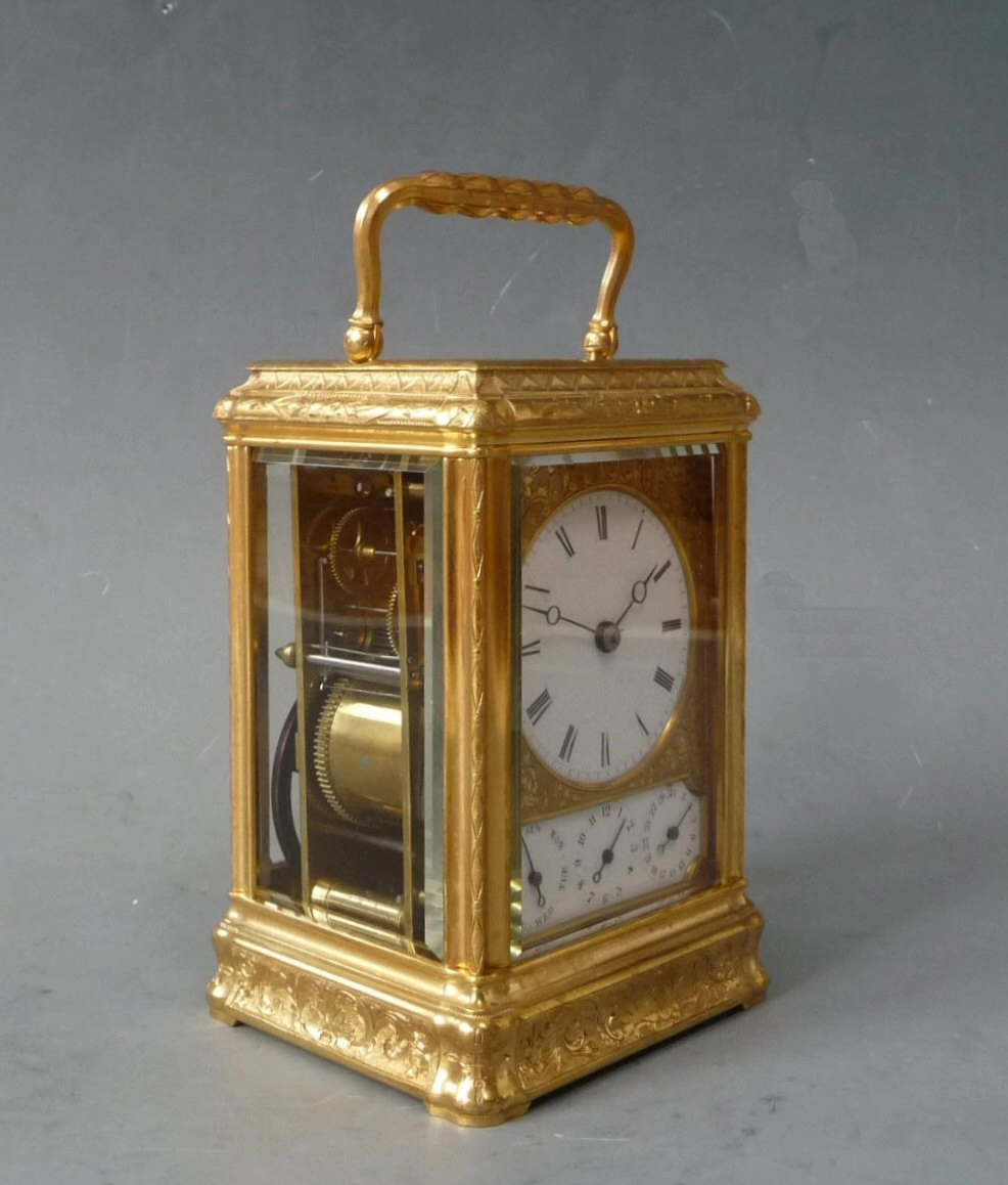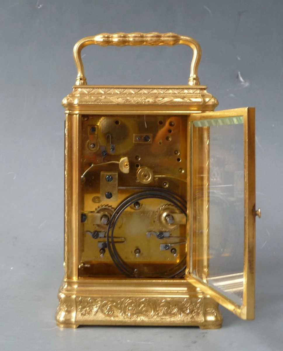 Een ingenieuze Franse petite sonnerie reisklok, gesigneerd Victorien Boseet, Parijs 1870-1880.