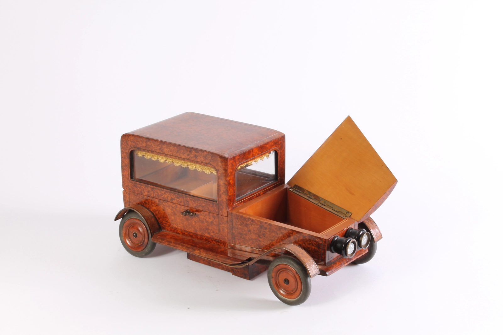 Een erg zeldzaam Zuid Duits/Oostenrijks gestoken draaiend doosje met kooplieden, ca 1850.
