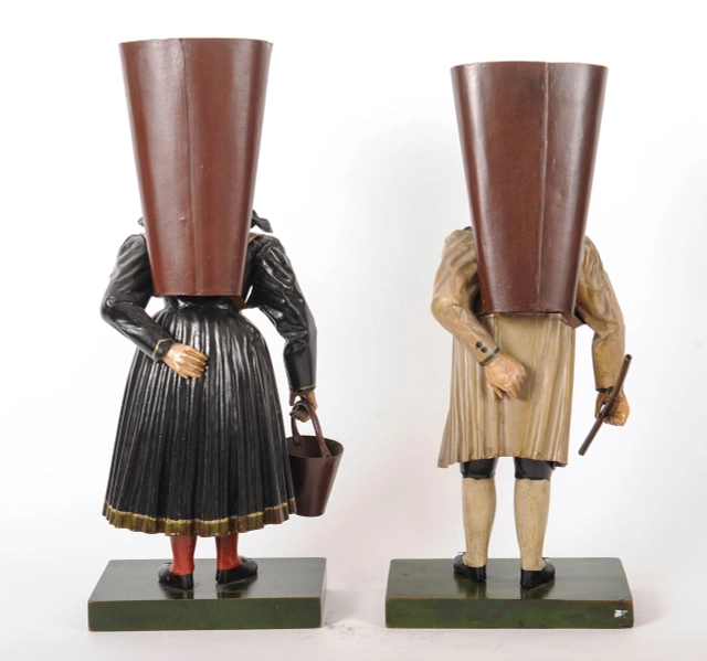 Een paar buxushouten vermoedelijk Japanse 'sater' figuren, ca. 1880.