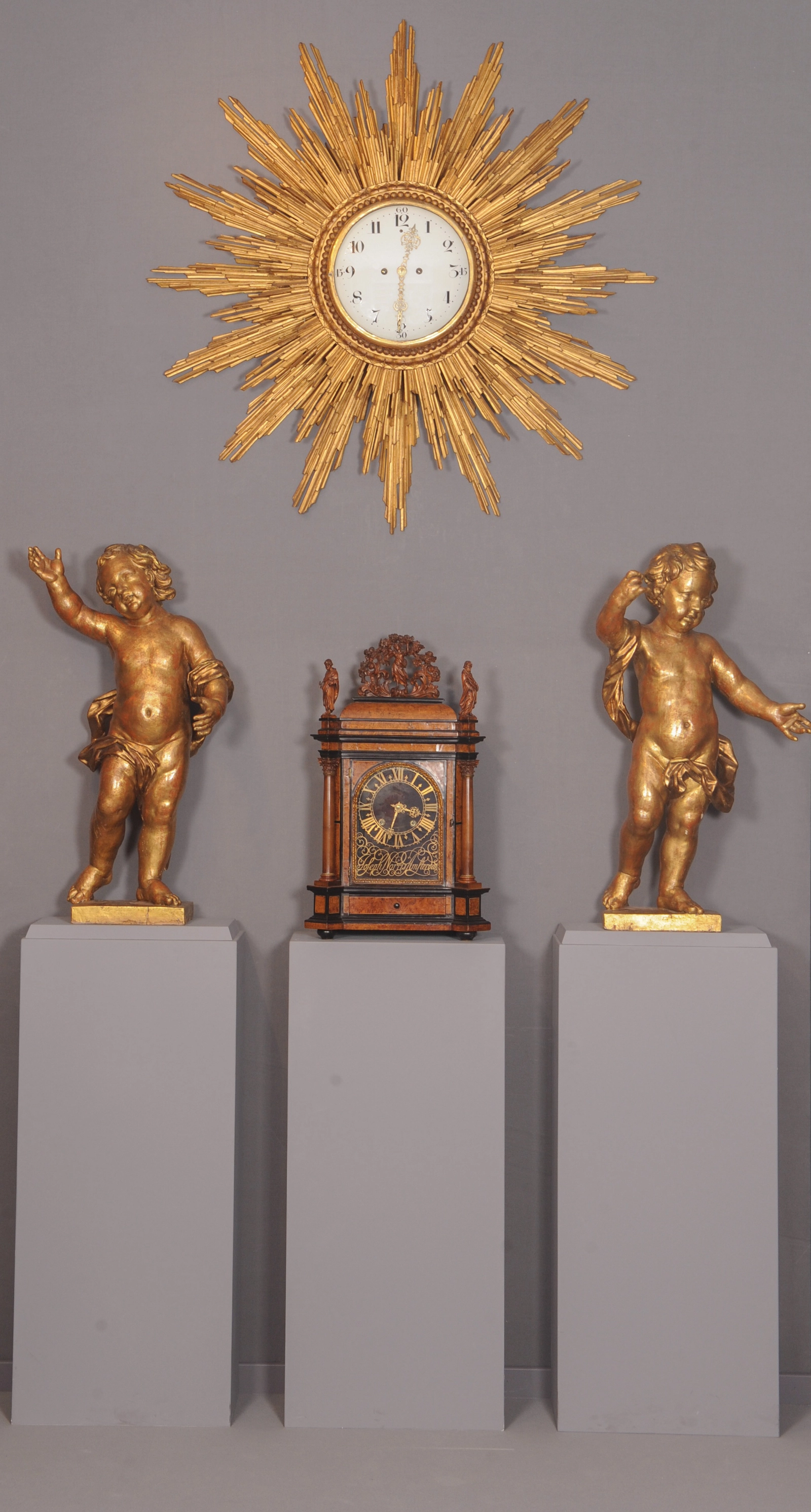 Een paar Duitse Zwarte Woud polychroom metalen figuren, omstreeks 1840