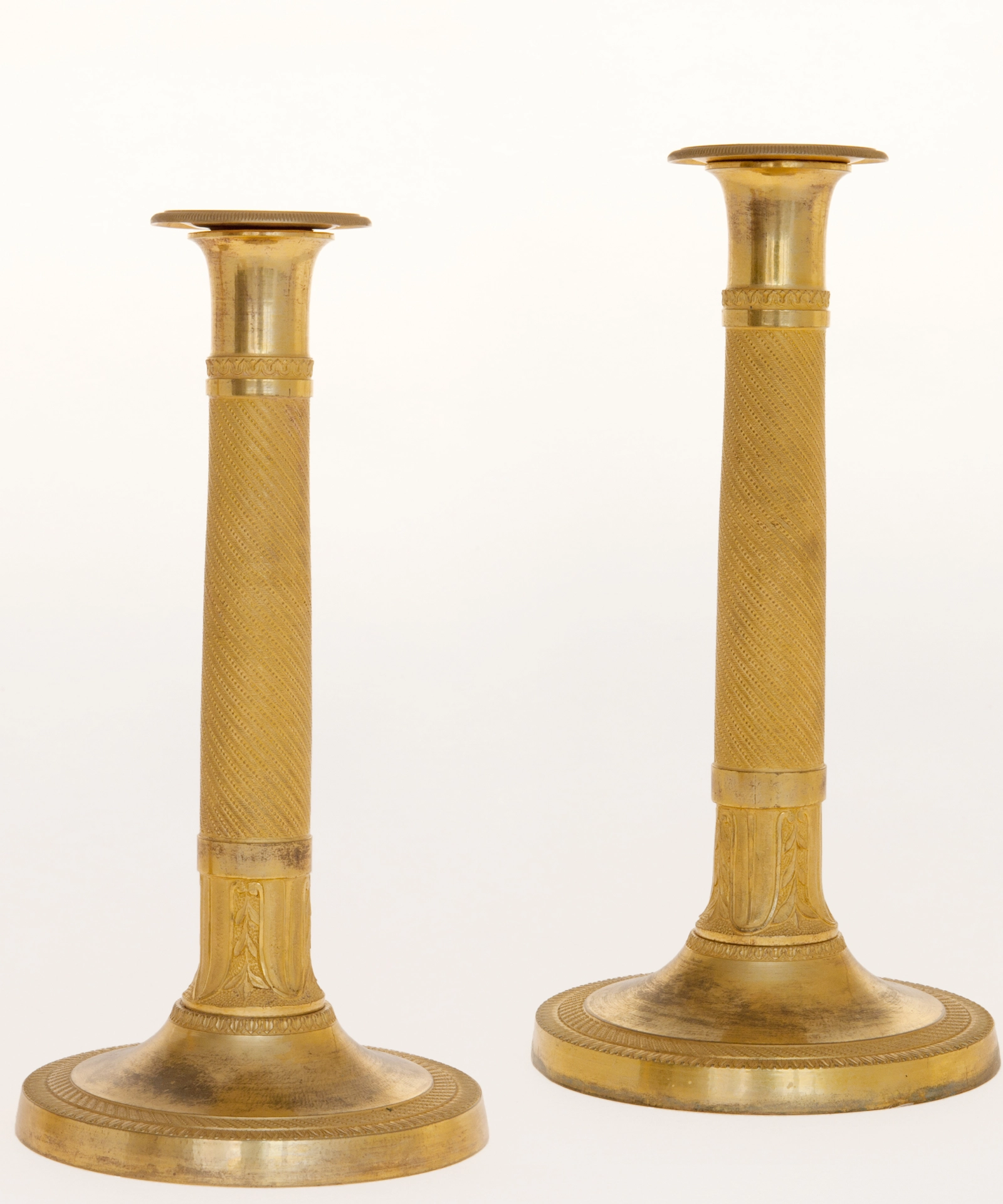 Een Paar Vuurvergulde Empire Kandelaars in Vuurverguld Brons
