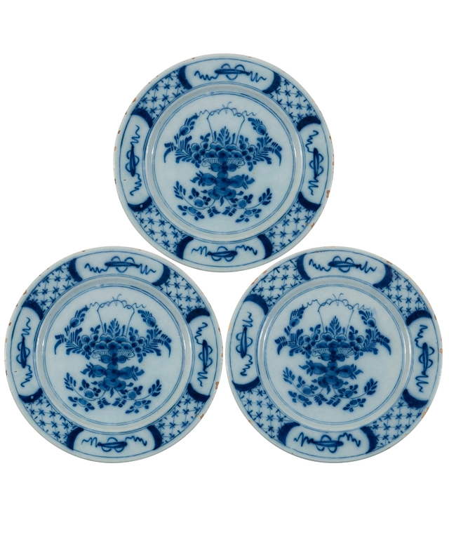 Een Set van Drie Blauw-witte Delftse Schotels