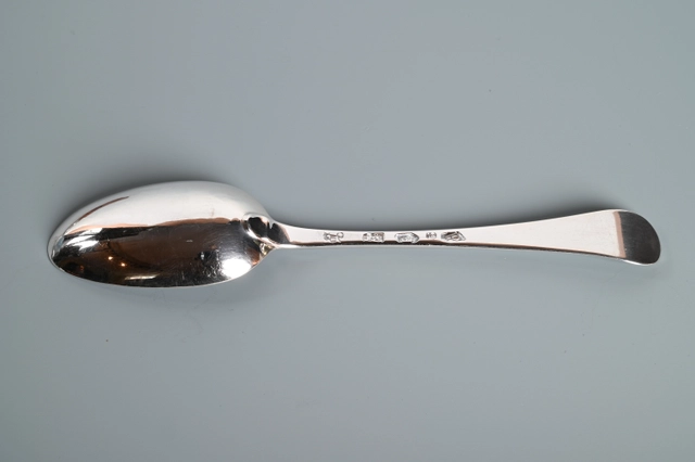 De zilveren lepels gemerkt. Lengte lepel 16.5 cm.