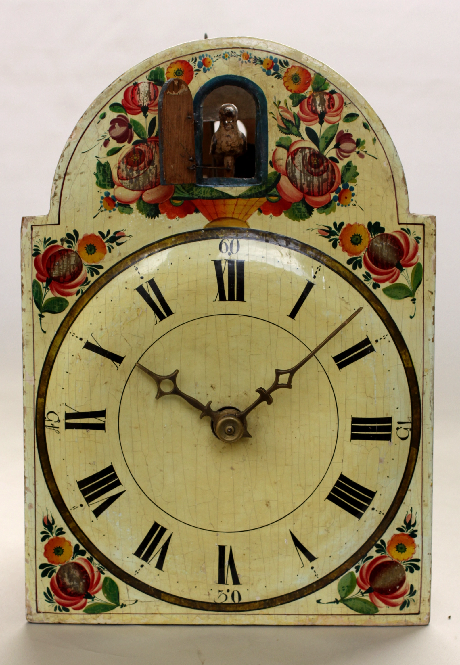 Een Zuid Duitse LXVI polychroom en vergulde zaagklok, circa 1780