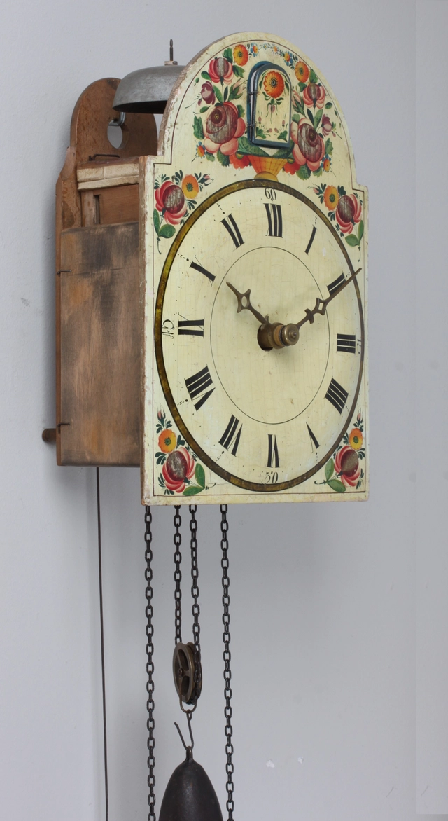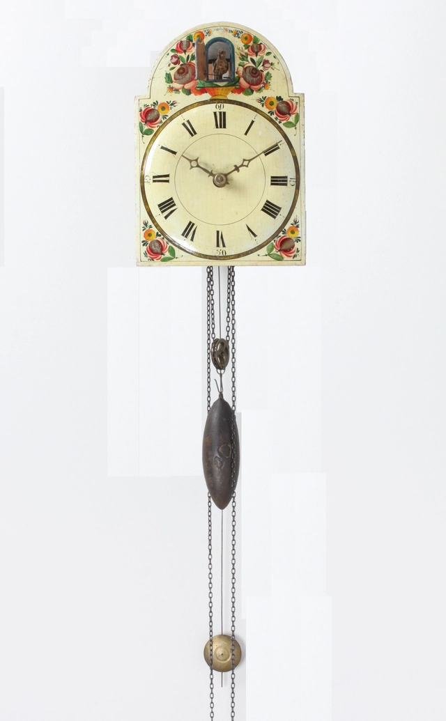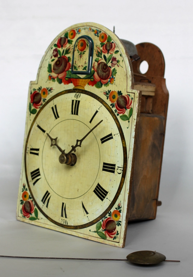 Een kleine Zwitserse 'Neuchâteloise' wandklok, circa 1740