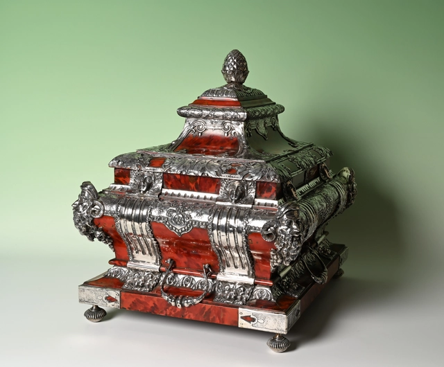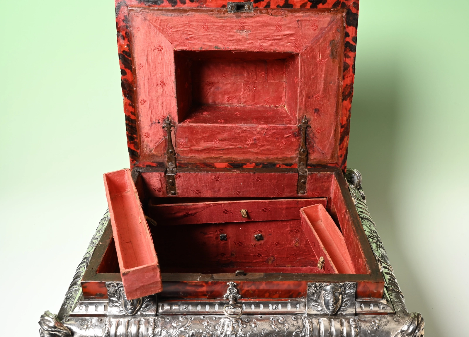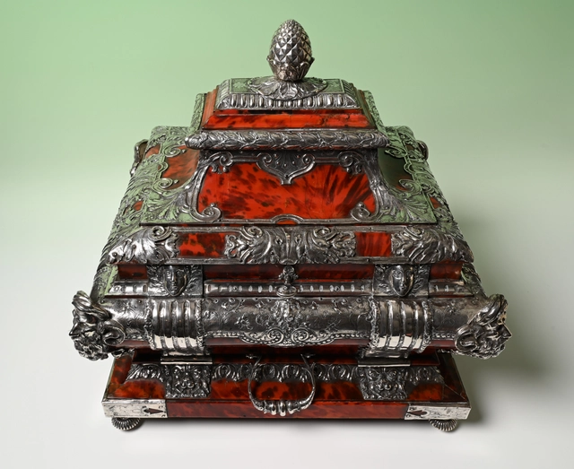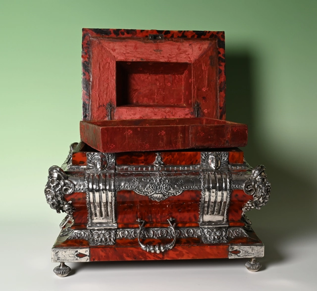 Een zeldzaam documenten kist bekleed met schildpad en zilver.