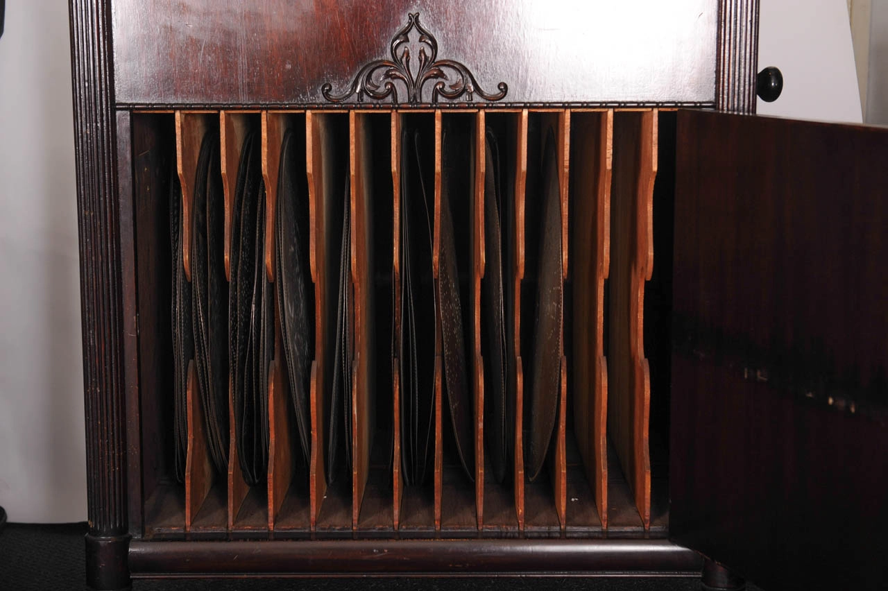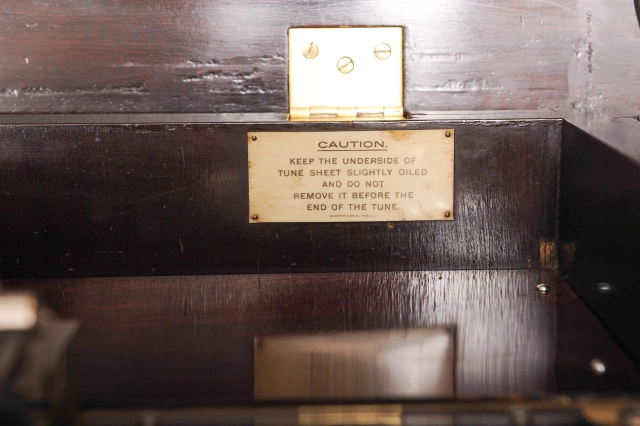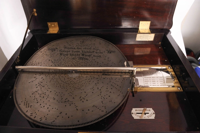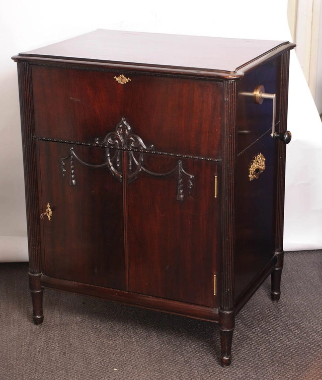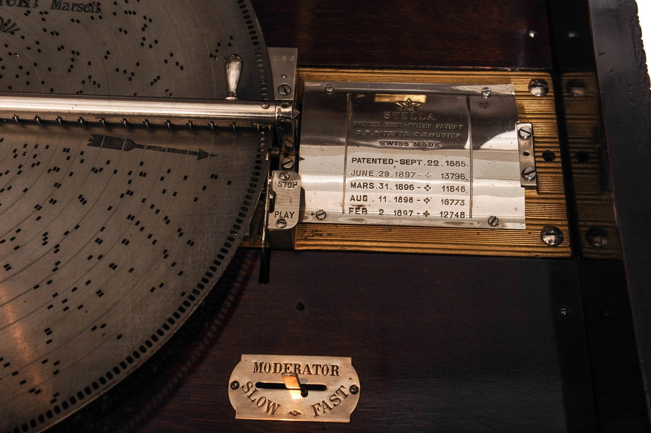 Een zeer zeldzame Duitse staande notenhouten en geanimeerde platenspeler, kalliope, omstreeks 1895