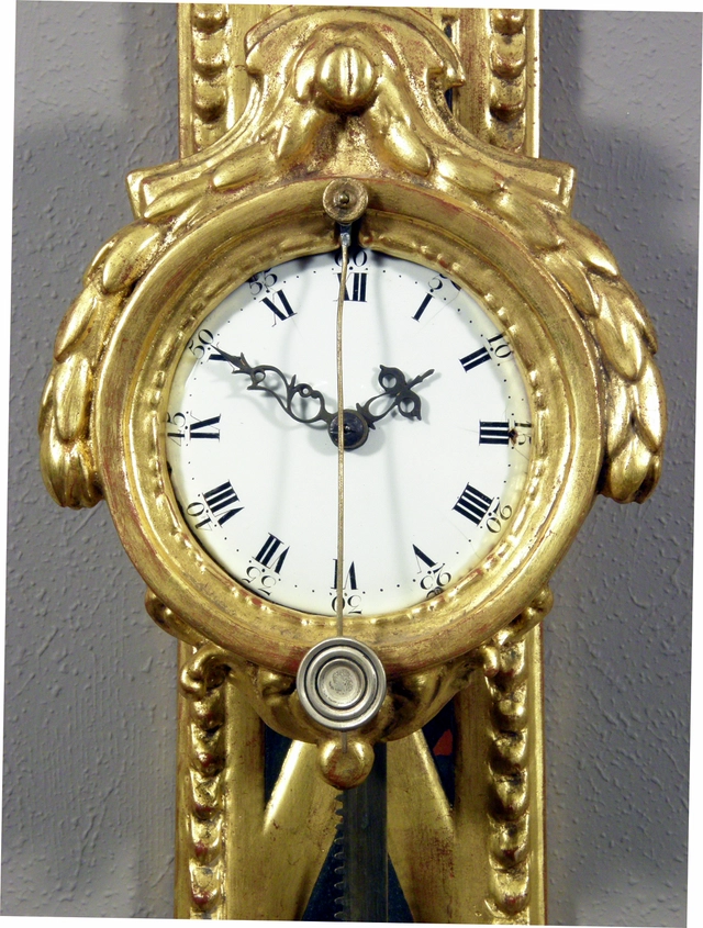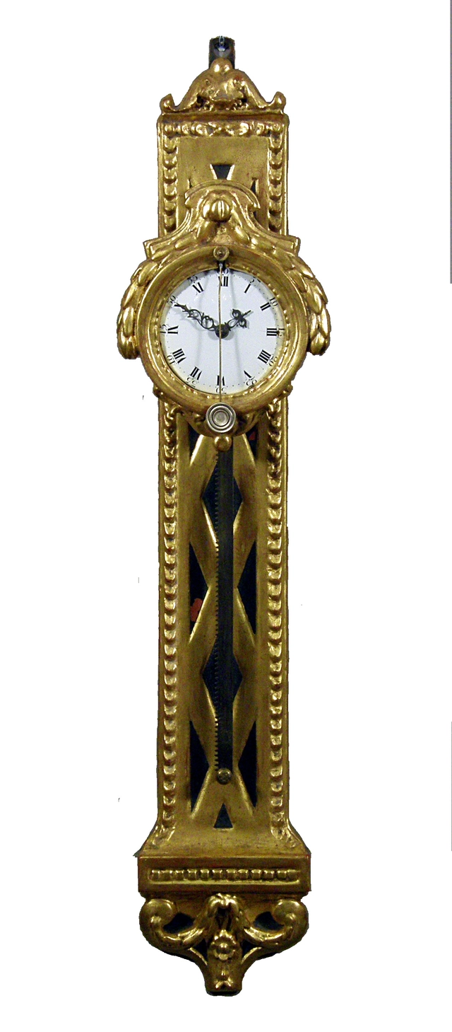 Een decoratieve Zuid Duitse bladgoud verguld houten sculpturale tafel klok, circa 1730.