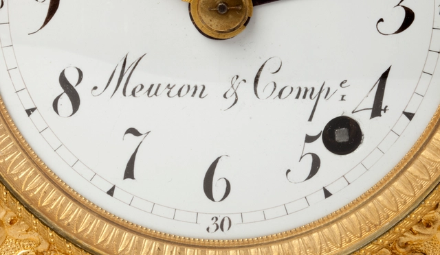 Imposante Napoleon III pronkpendule, vuurverguld brons met gepatineerde engelen