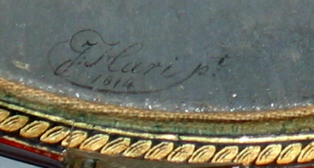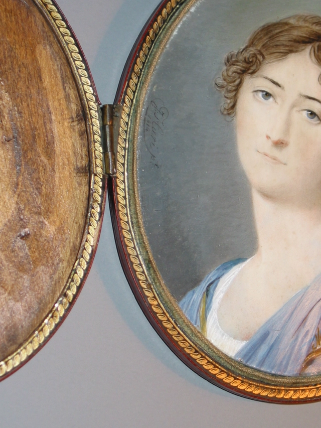 J. Hari: miniatuurportret van jonge vrouw in Empire japon