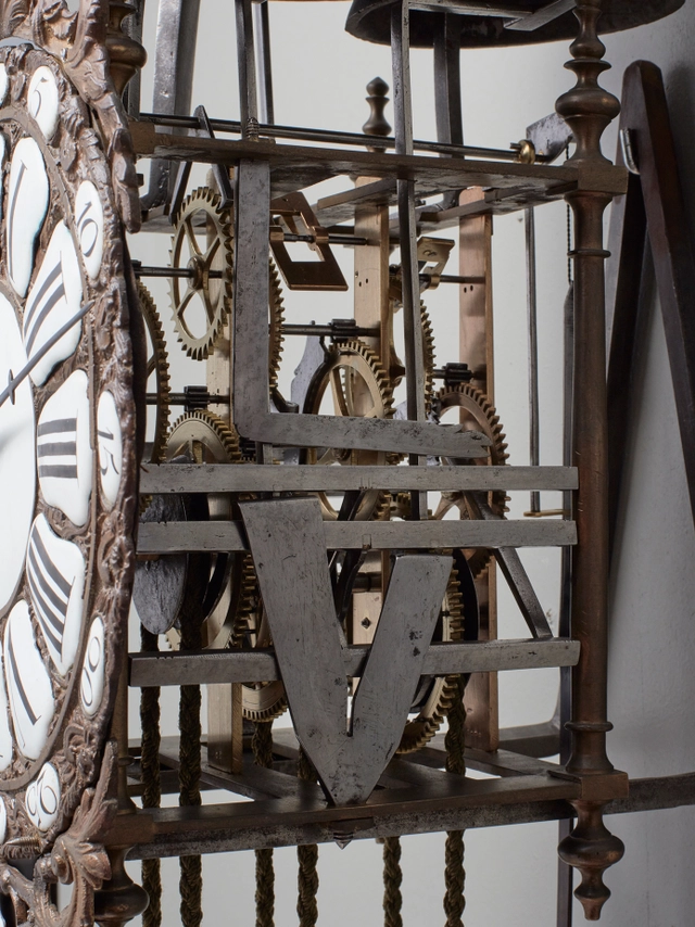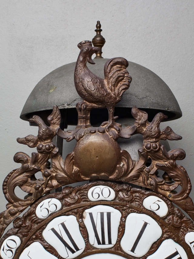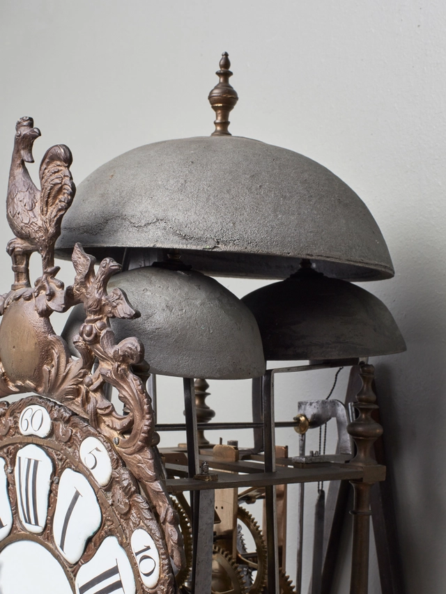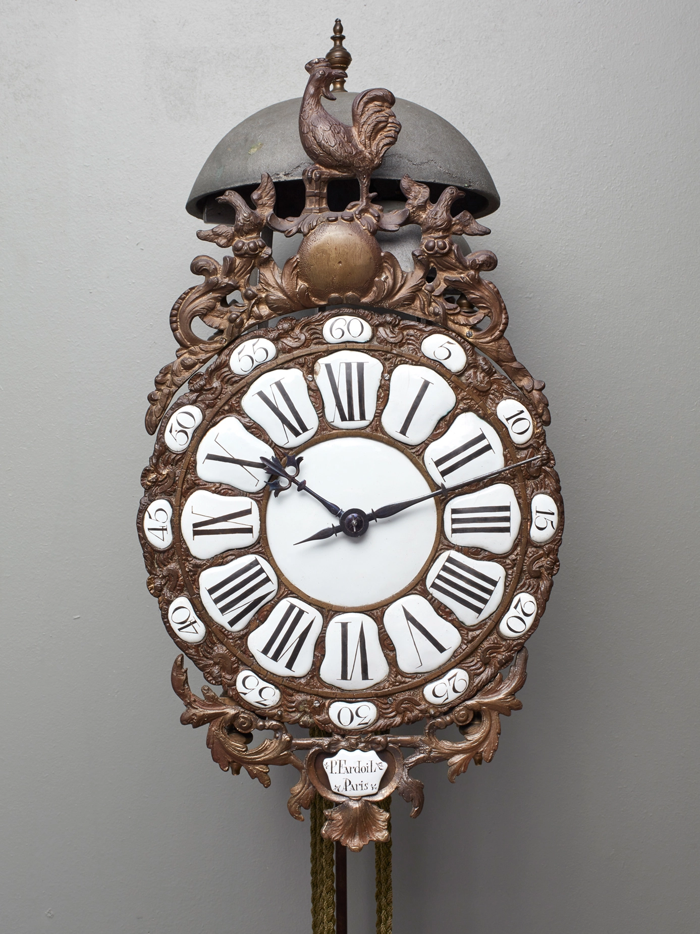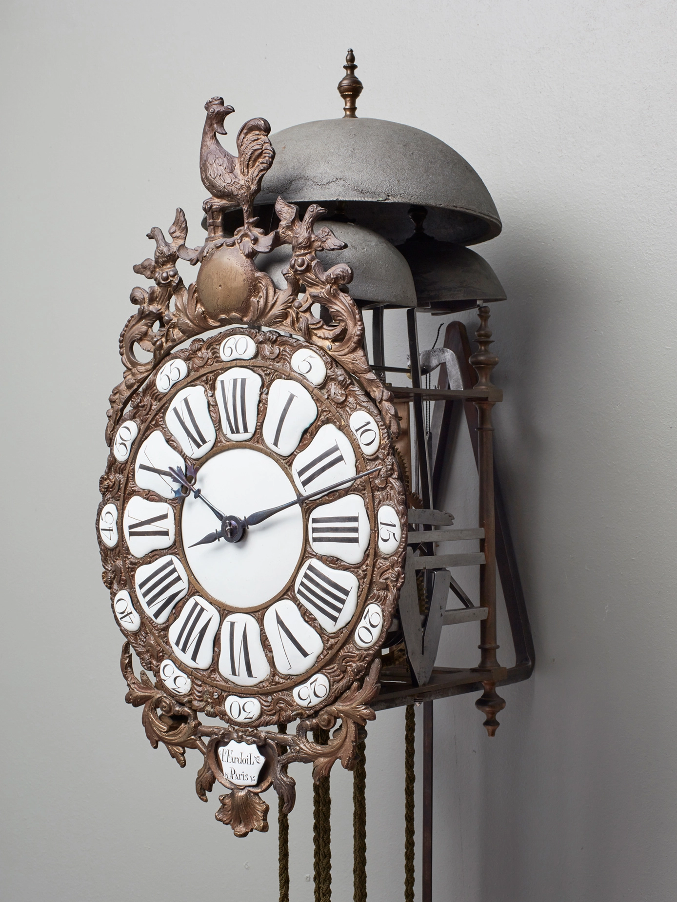 Een Franse ijzer en messing lantaarnklok met wekker, door Rouelle, omstreeks 1725.