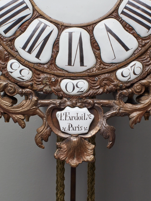 Een klein Frans messing lantaarnwekkertje, door Le Doux, omstreeks 1730