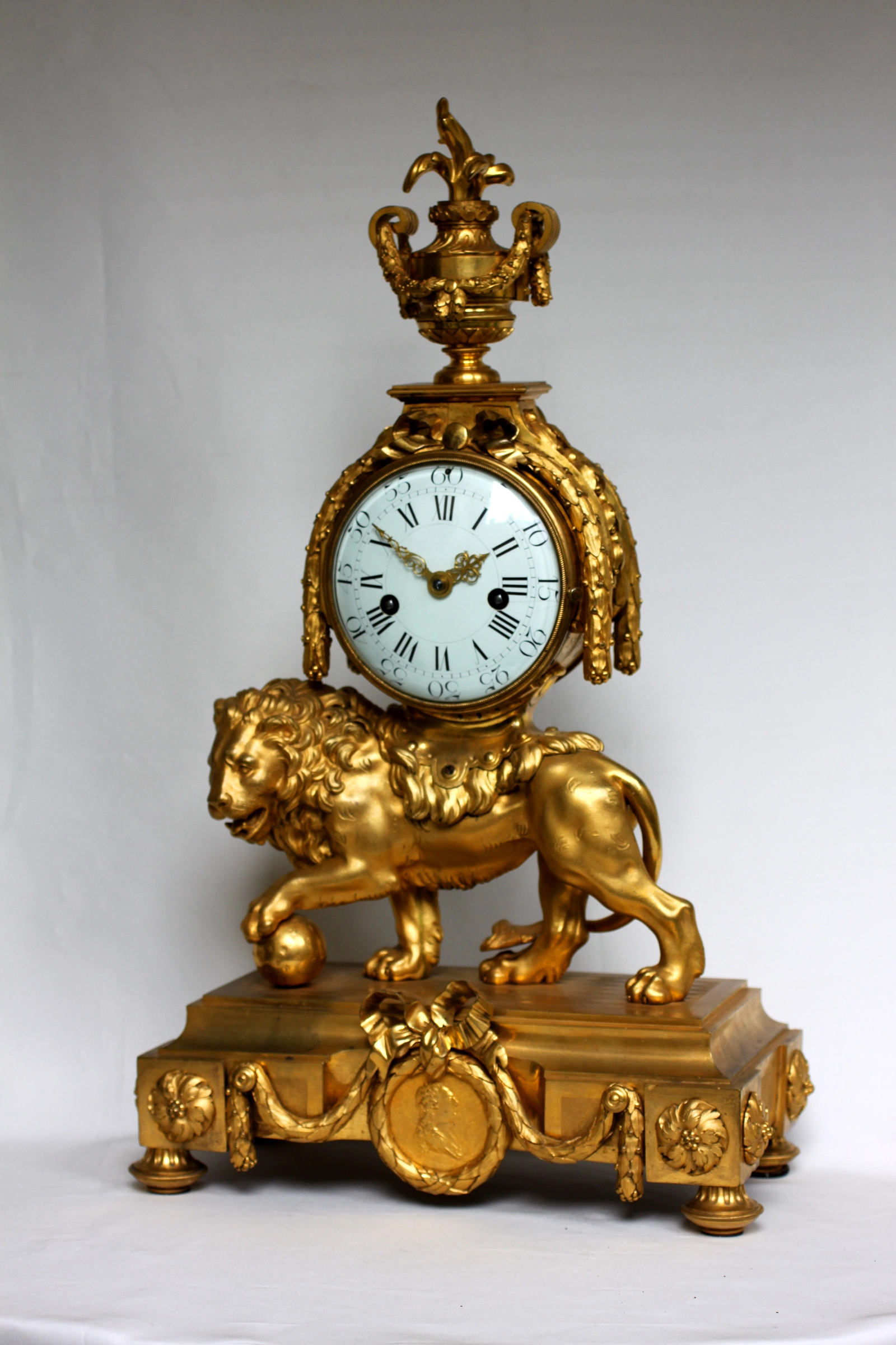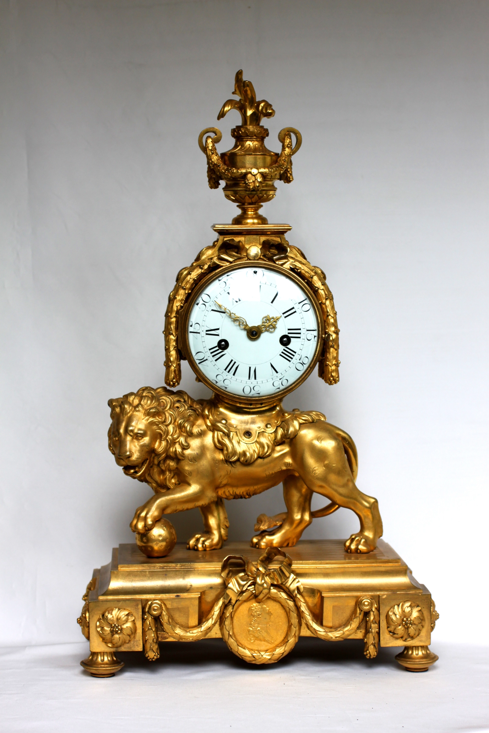 Franse Louis XVI leeuwpendule met speeldoos