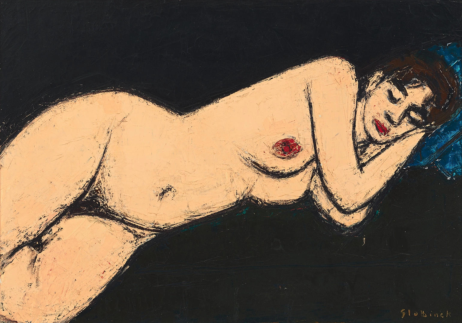Zittend naakt met rode doek