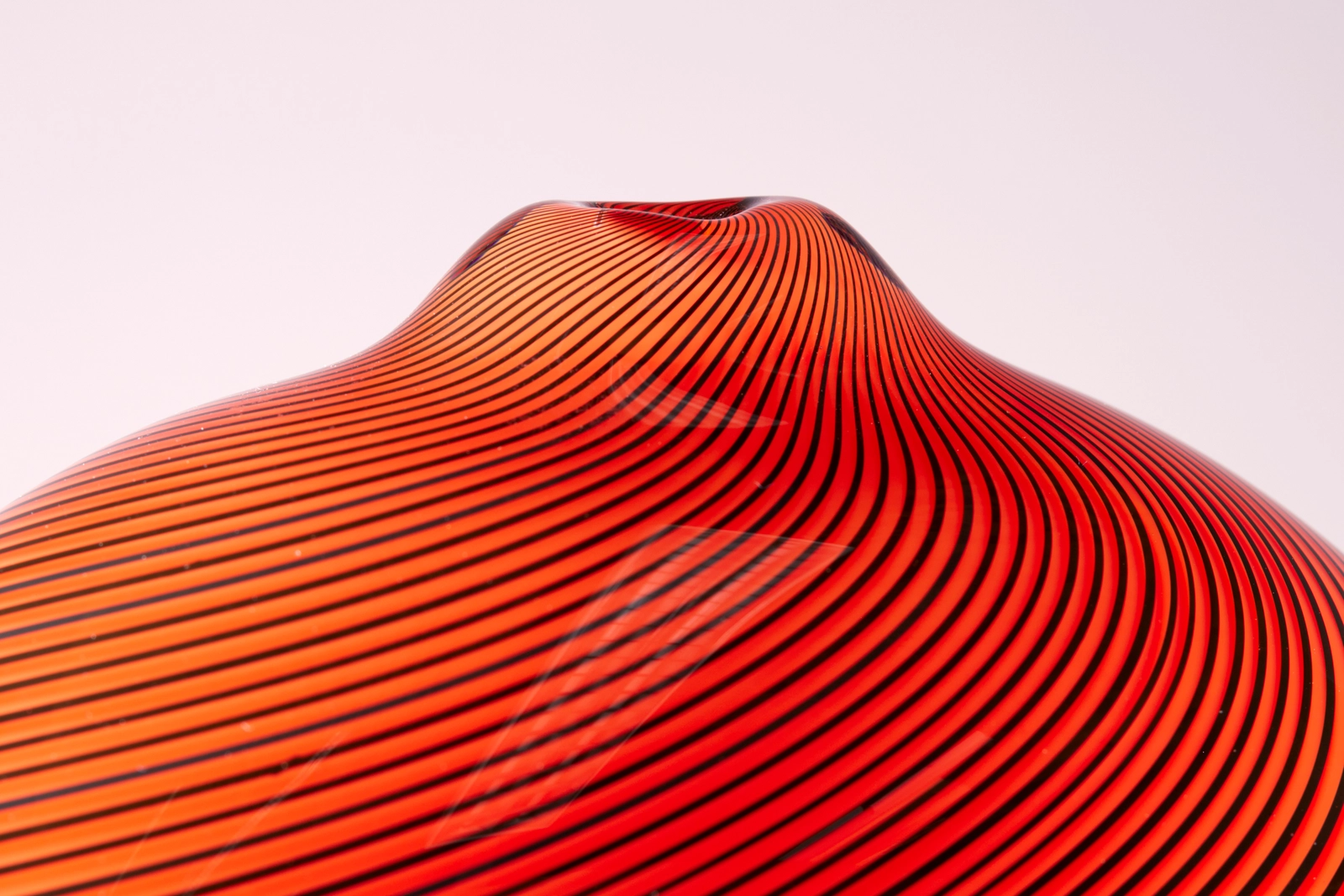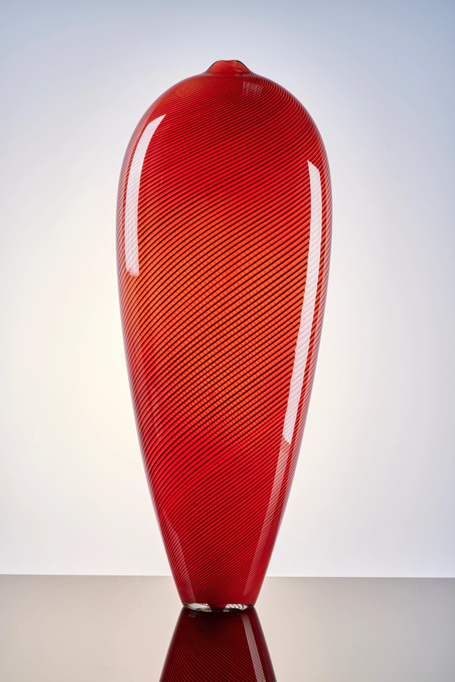 Lino Tagliapietra (Murano 1934) , Notte del Redentore, blankglazen vaas met meerkleurige horizontale en verticale glasdraden