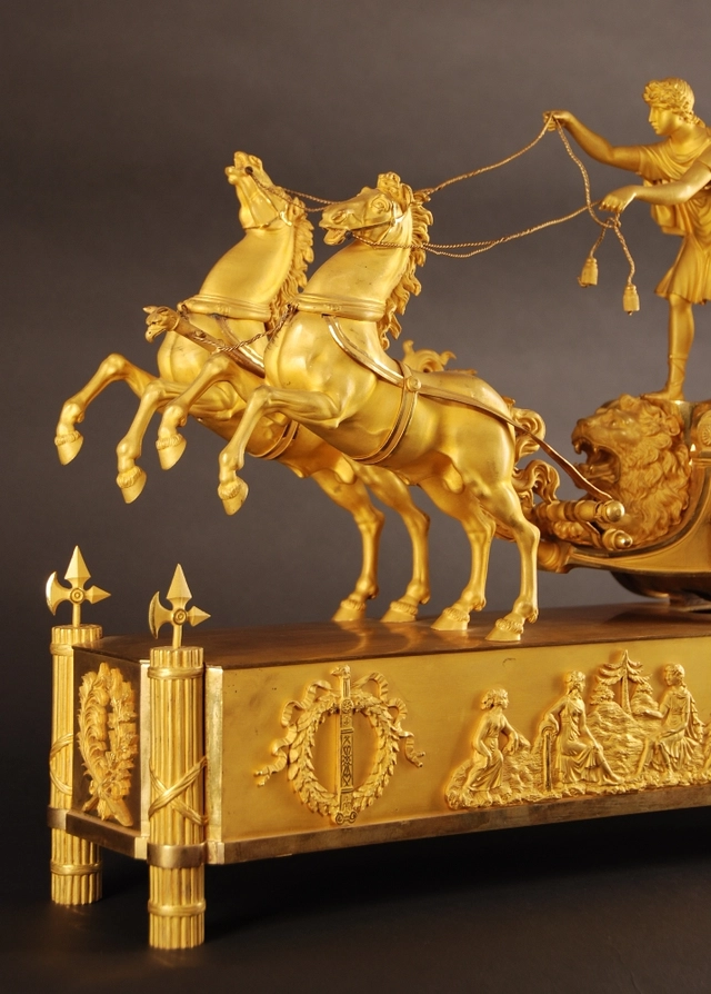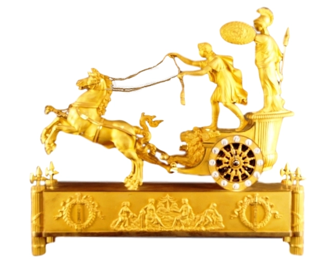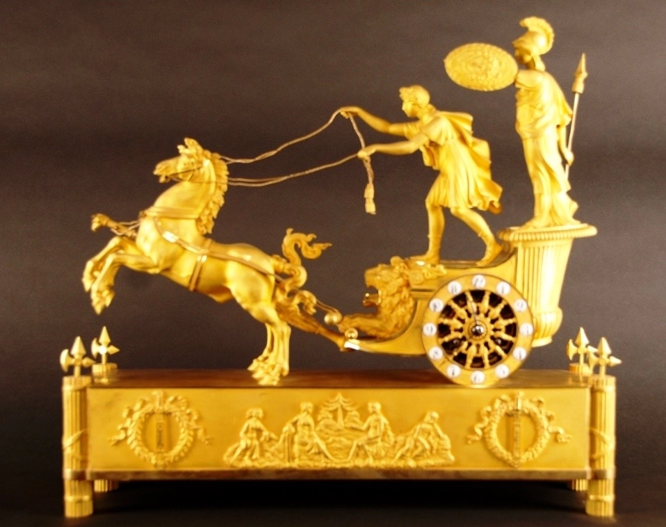 M01 French Ormolu Two Horse Chariot Clock, 'The Chariot of Telemachus'.
