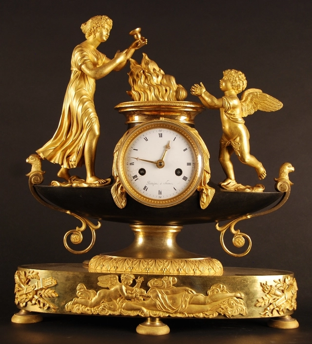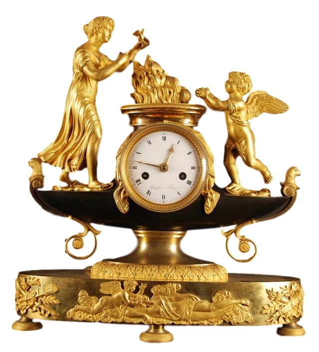 M09 Vuurvergulde en gepatineerde pendule