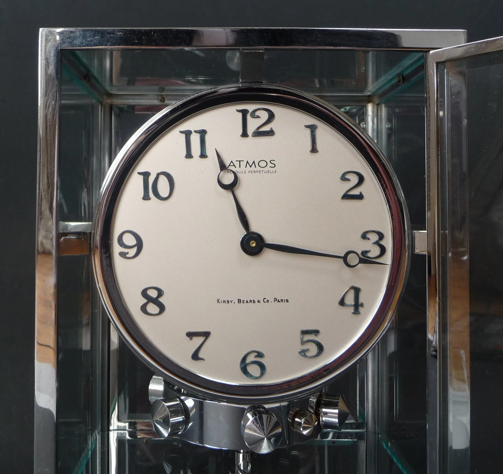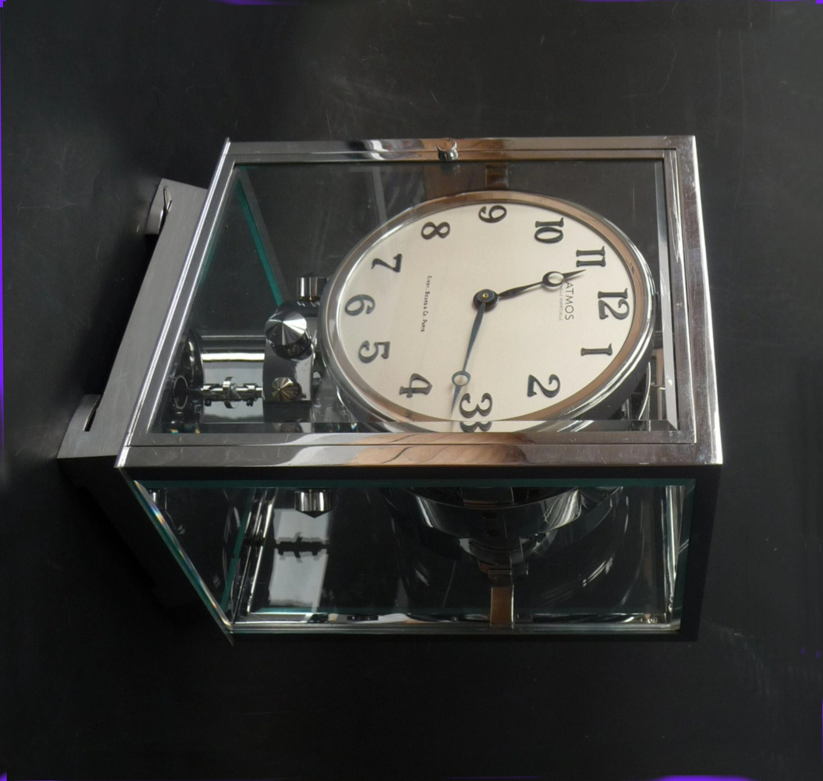 M137 Atmos in spiegelglaskast, J.L.Reutter, Frankrijk, ca. 1930.