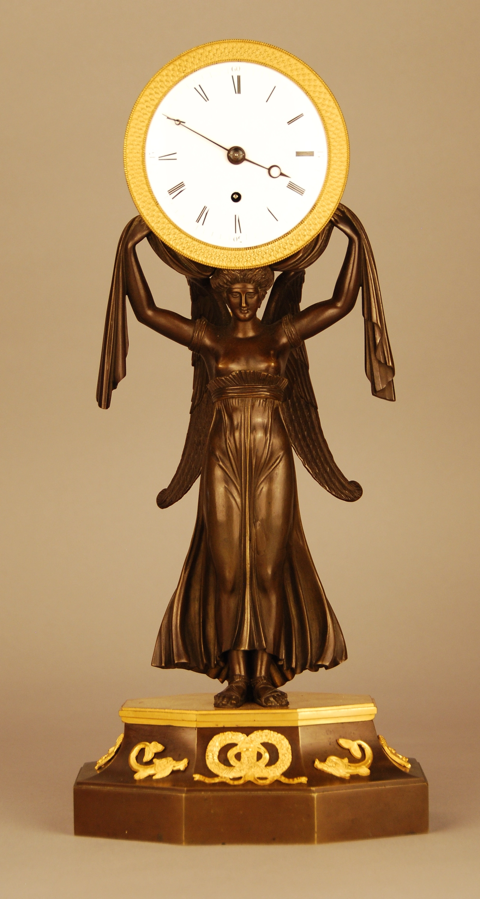 M164 Bronzen 'Aurora' pendule met snek uurwerk. ca. 1820.