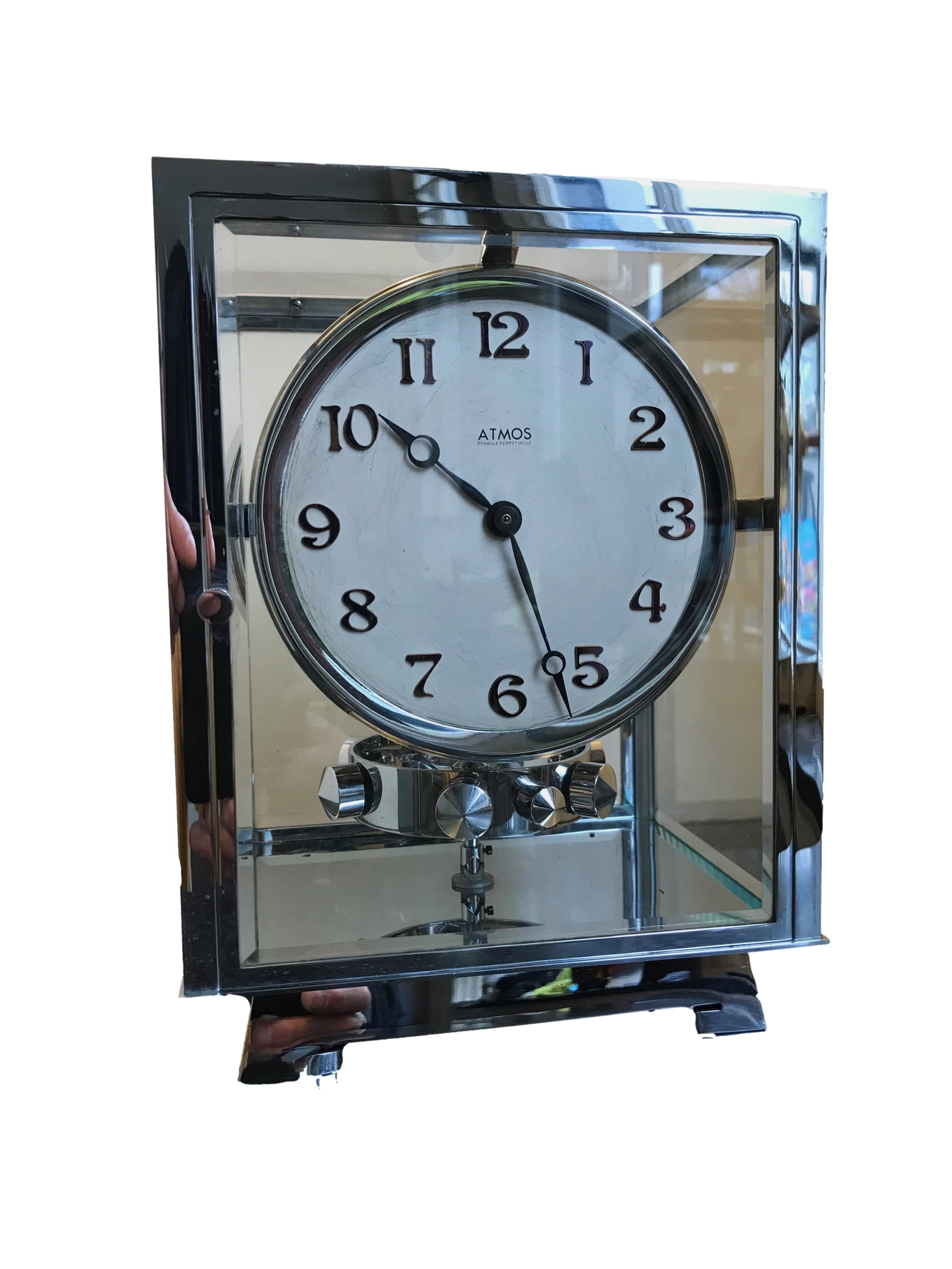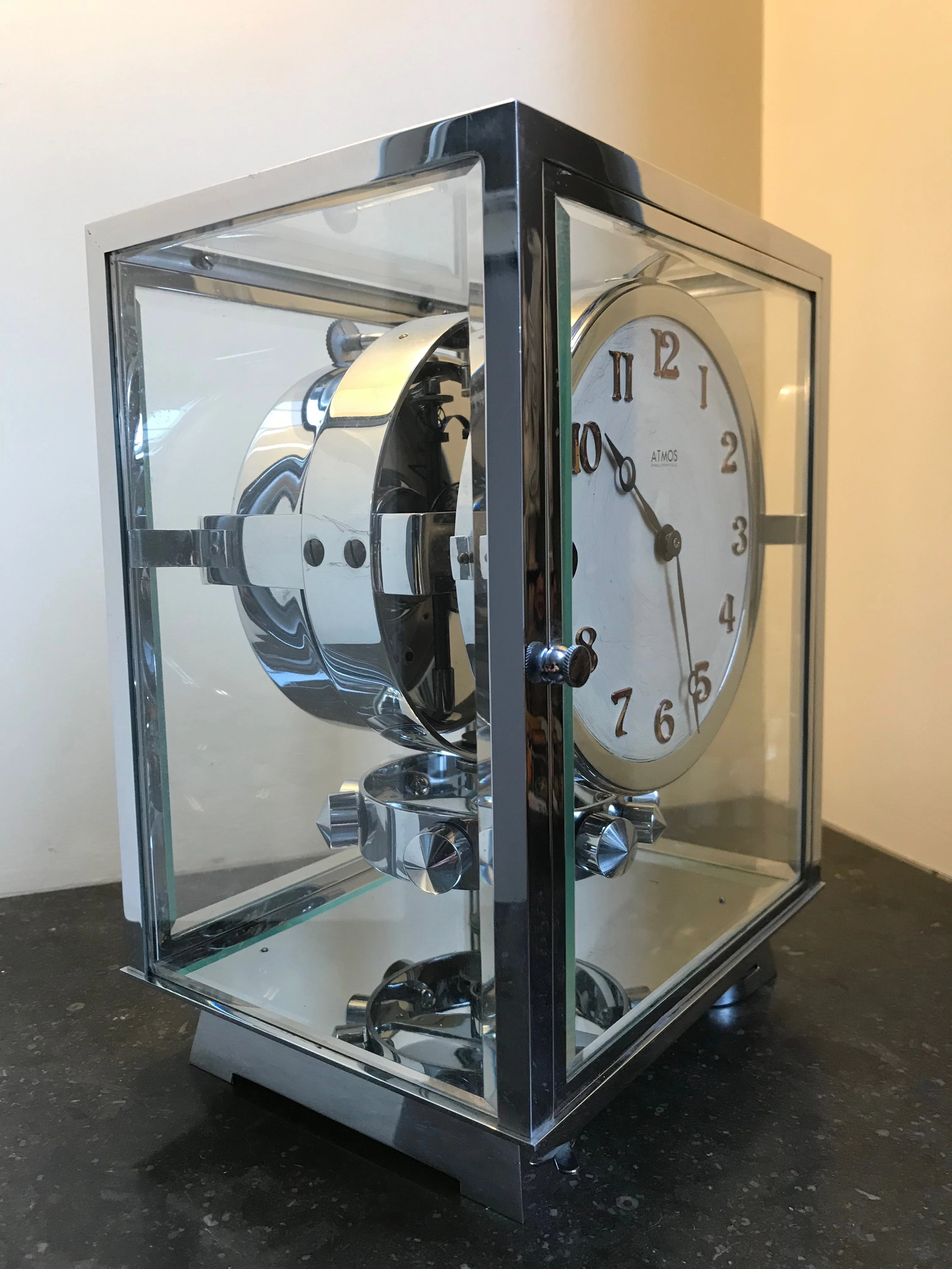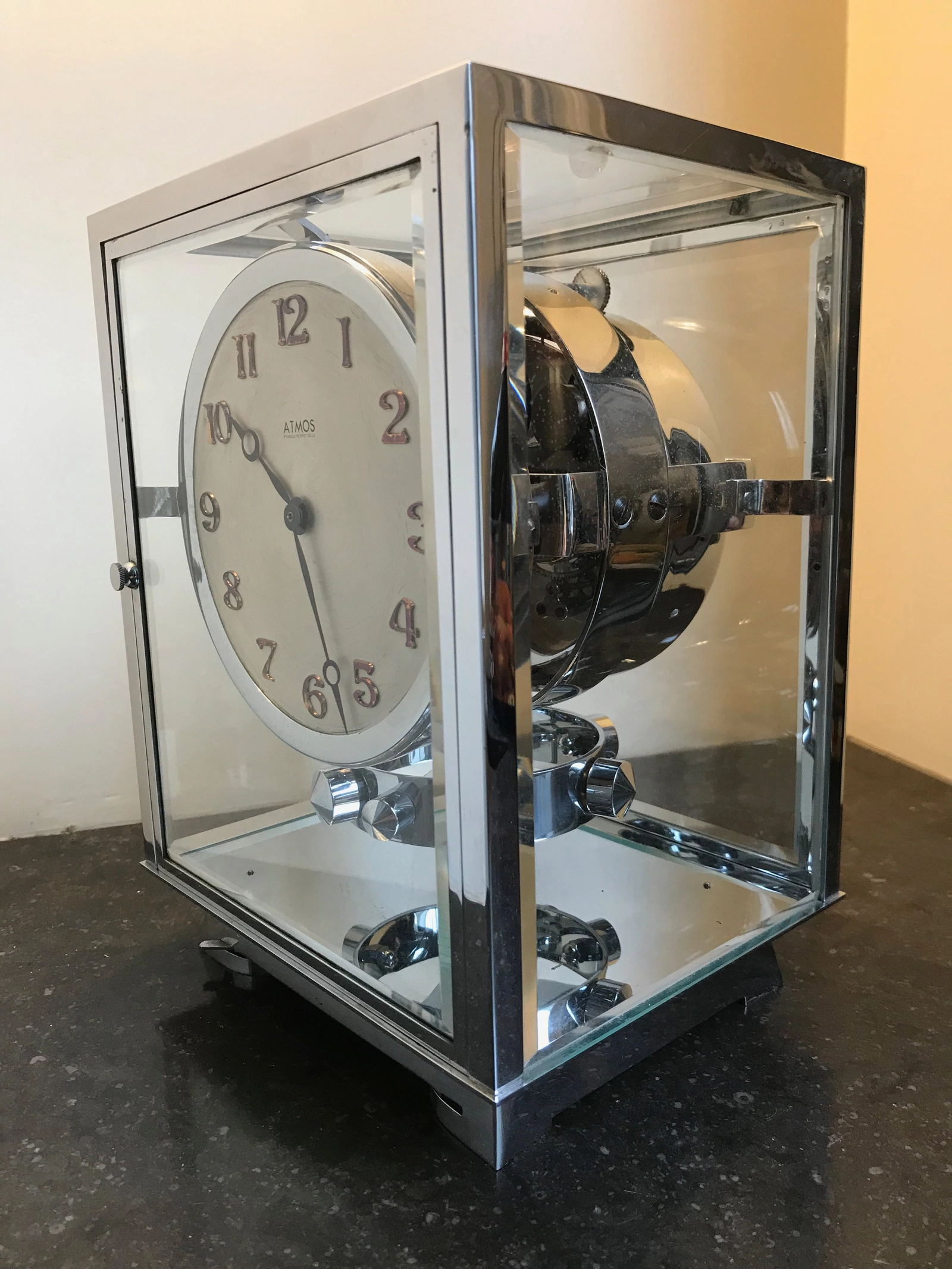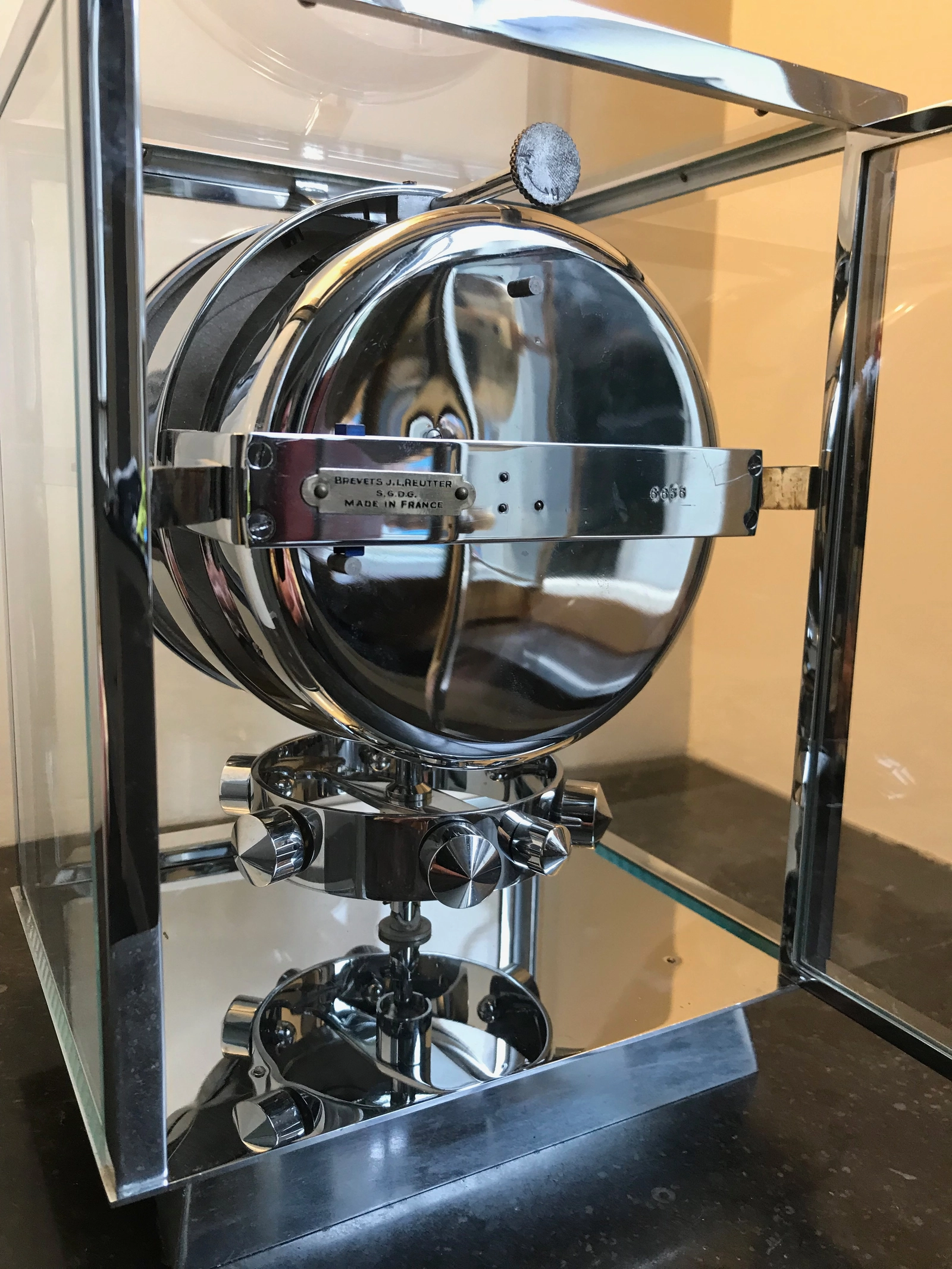 M115 Verchroomde art deco JL Reutter vier glazen Atmos klok