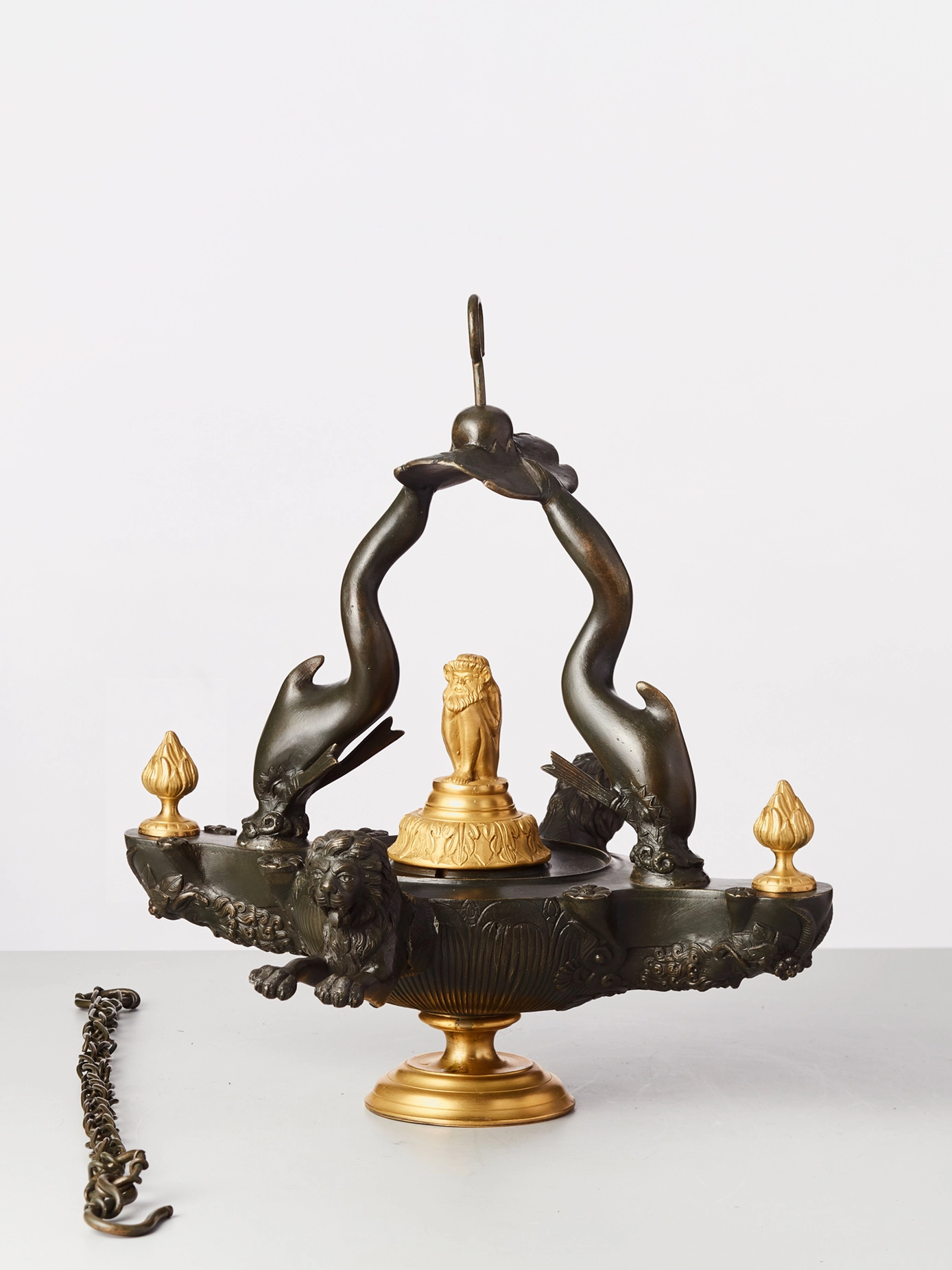 Een paar fraaie Franse cloisonné olielampen in Oriëntaalse stijl, Barbedienne circa 1880