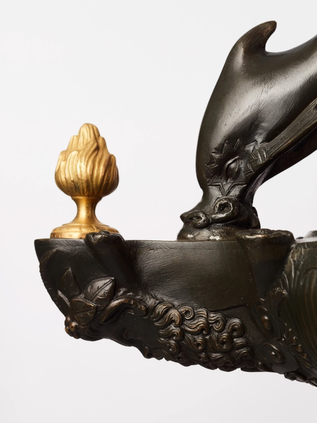 A lovely floral mahogany Empire dressing mirror, with the original candle stick on the columns, circa 1820
