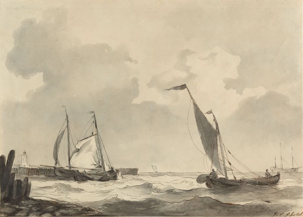 De specialiteit van J.C. Schotel was de weergave van schepen, tuigage en mensen tegen een vaak dreigende achtergrond van lucht en water. Voor de negentiende eeuw was Schotel waarschijnlijk de belangrijkste zeeschilder.