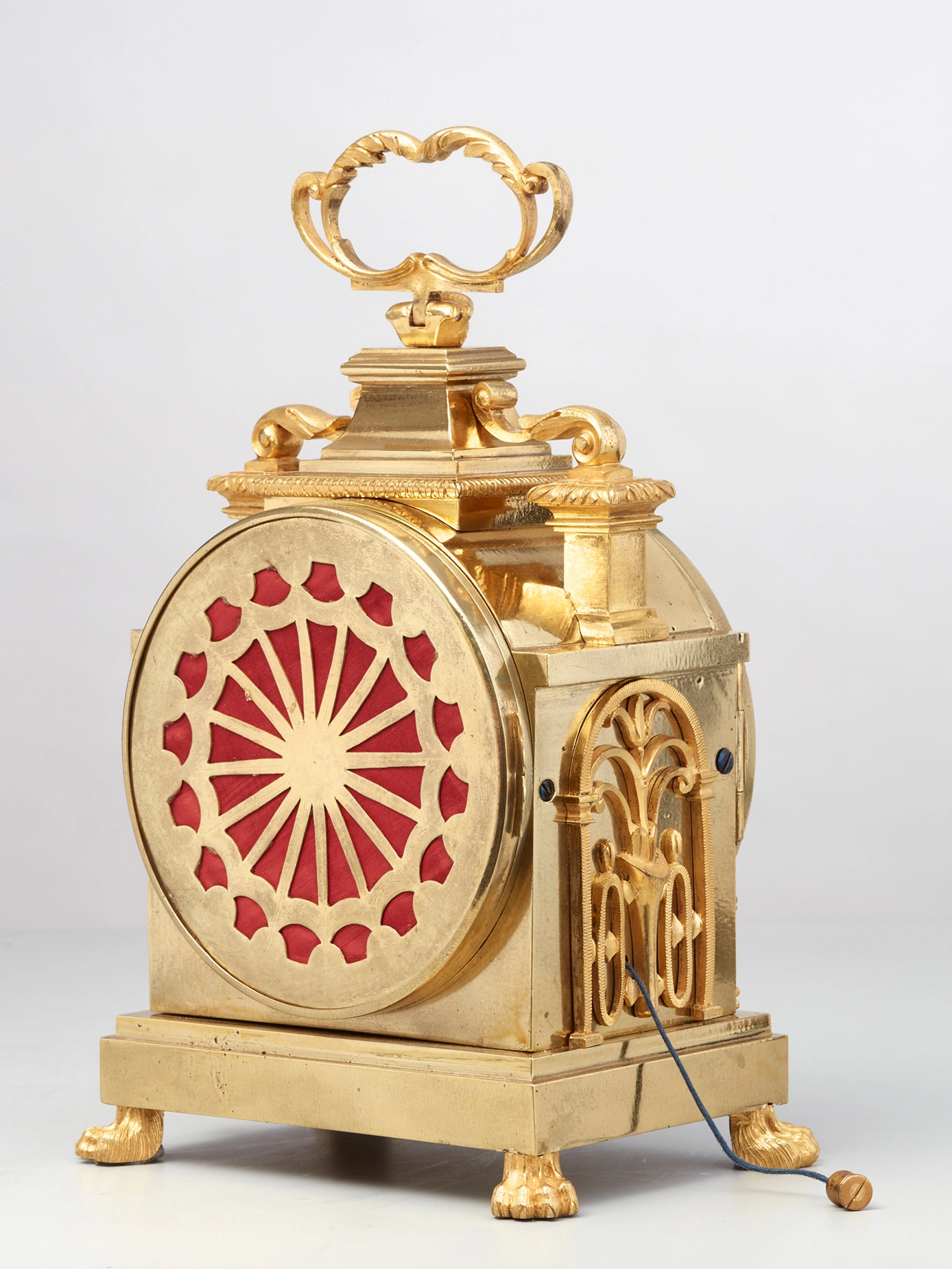 Een aantrekkelijk Frans miniatuur messing tafellantaarnwekkertje, circa 1780