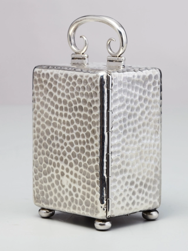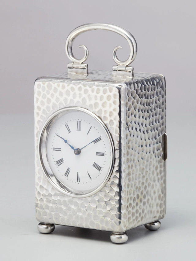 Een aantrekkelijk Engels miniatuur zilveren reisklokje gemerkt voor Londen 1901