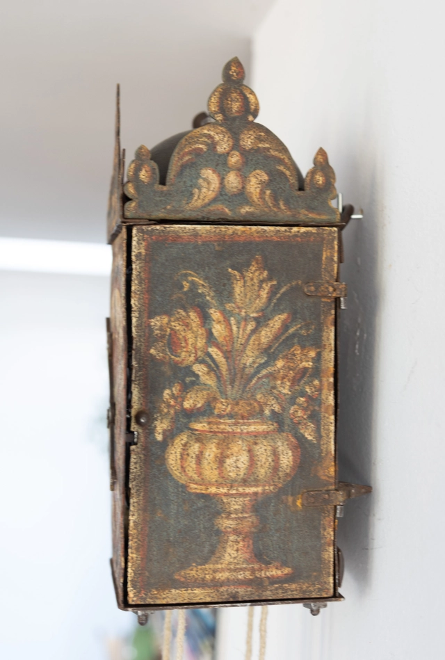 Een staartschippertje, Friese miniatuur wandklok, circa 1840.