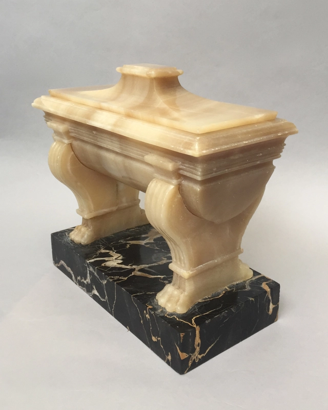 Ons elegant schaalmodel is gemaakt naar een tombe die werd gevonden in de Thermen van Agrippa op de Campo Marzio in Rome. Piranesi heft deze sarcofaag afgebeeld in zijn publicatie over de Campo Marzio van 1756. Daar staat de tombe boven een dedicatie aan de Britse architect Robert Adam. In het landhuis Kedleston Hall in Derbyshire vinden we bankjes in dezelfde vorm als deze sarcofaag; ze zijn gemaakt in 1788 en geïnspireerd op de tombe die Robert Adam in Rome had bezocht. Sinds 1740 bevat de sarcofaag uit de baden van Agrippa de as van Paus Clemens XII, als onderdeel van zijn grafmonument in de Basiliek van Lateranen.