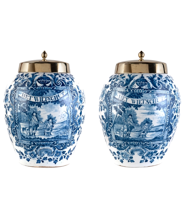 Een Set van 6 Polychrome Hollandse Delftse Borden