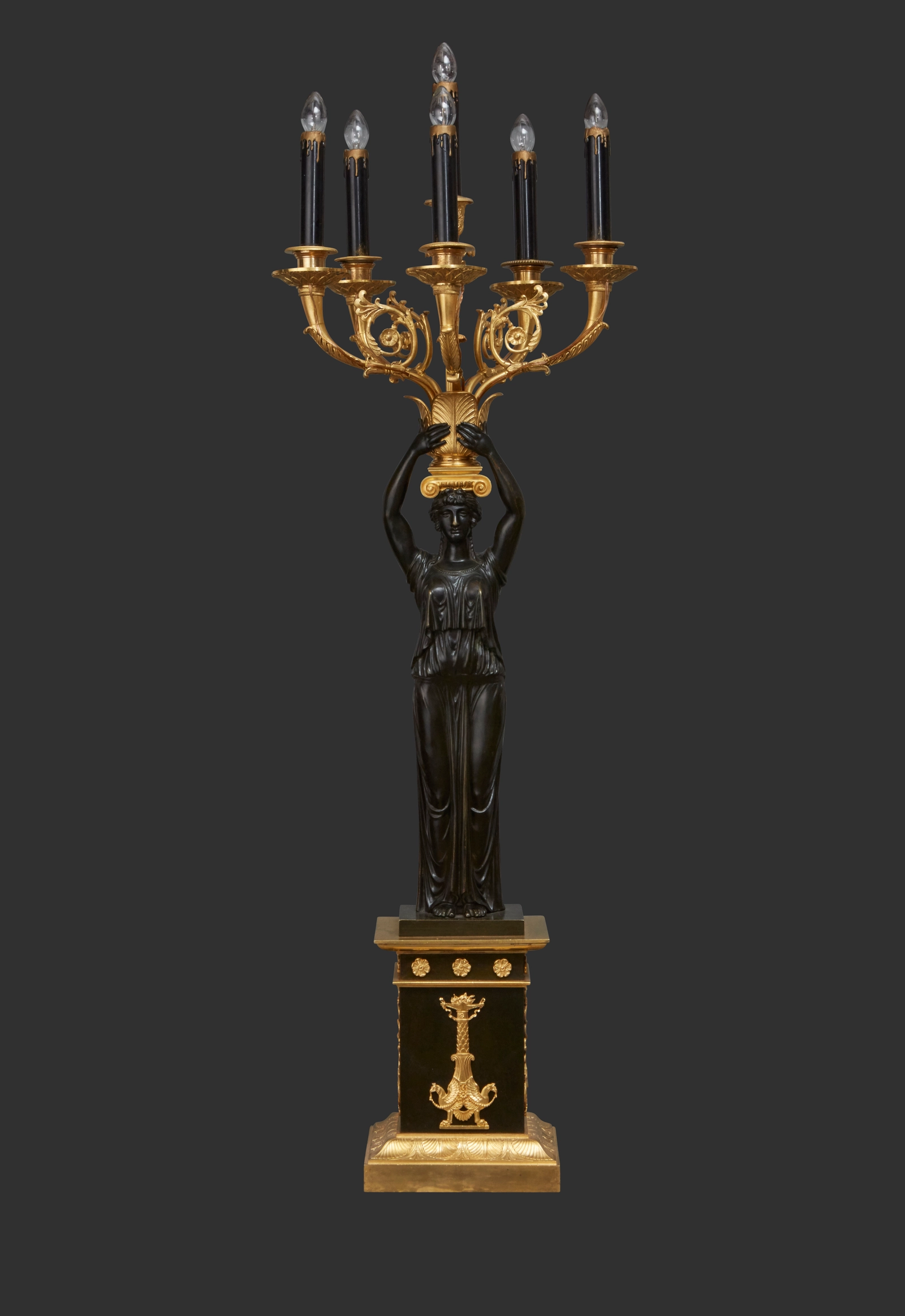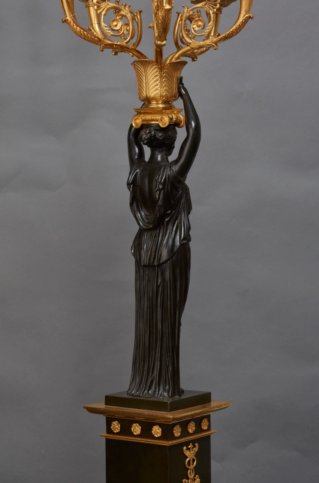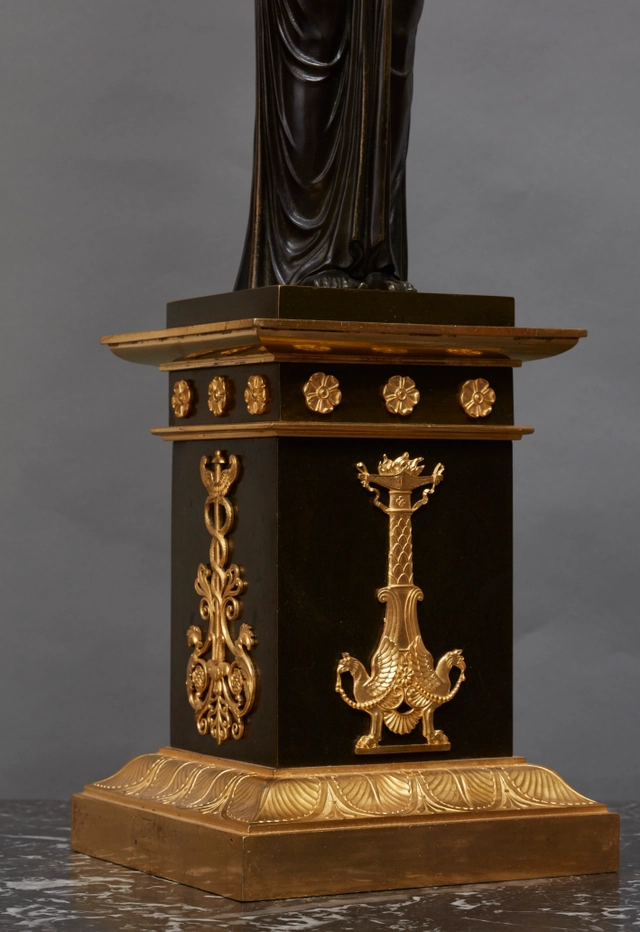 Een kleine Franse Empire verguld en gepatineerd bronzen pendule gesigneerd Grandperrin à Perrin circa 1805.