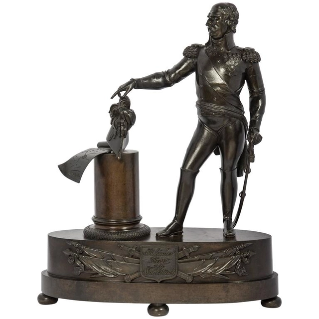 Sculptuur pendule, de glorie van Napoleon te paard, de Capitulatie van Ulm, Louis Philippe ca. 1850.