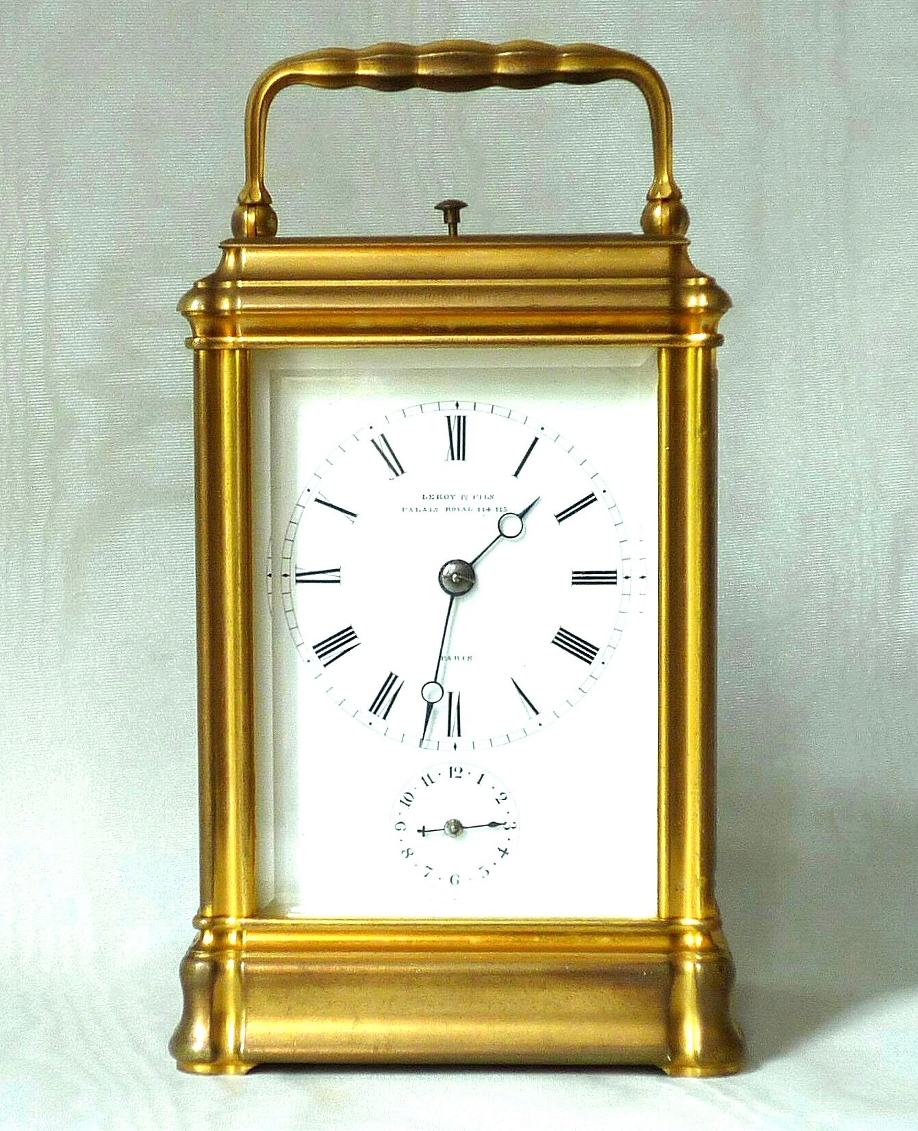 Een Franse reisklok met zeldzaam slagwerk, wederverkoper Grottendieck Brussel, circa 1880