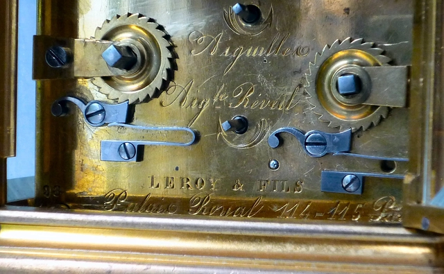 Een mooie gorge case Franse reiswekker, Drocourt, 8 daags, kalender en wekker, gedateerd 1868.