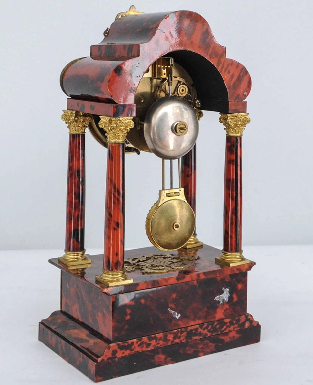An attractive Charles X ormolu and crystal portico striking 8-day mantel clock
