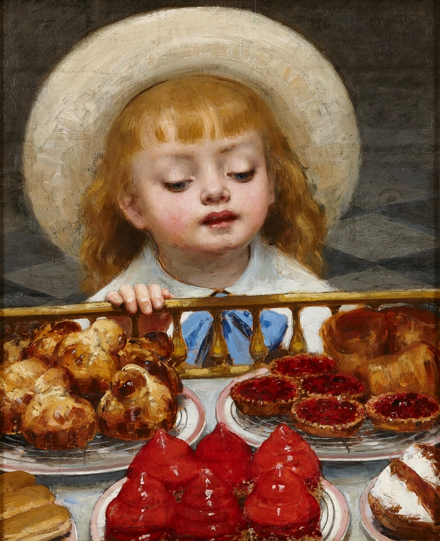De aantrekkingskracht van dit schilderij is dan ook niet zozeer verbonden aan de kunstenaar, maar aan het onderwerp van het jonge meisje dat zo begerig naar de zoete lekkernijen kijkt. De spanning tussen de levendig geschilderde taartjes waar zij alleen naar mag kijken, en het keurige maar gretige voorkomen van het meisje, wakkeren een universeel gevoel aan van herkenning, van onschuldige begeerte en nostalgie.