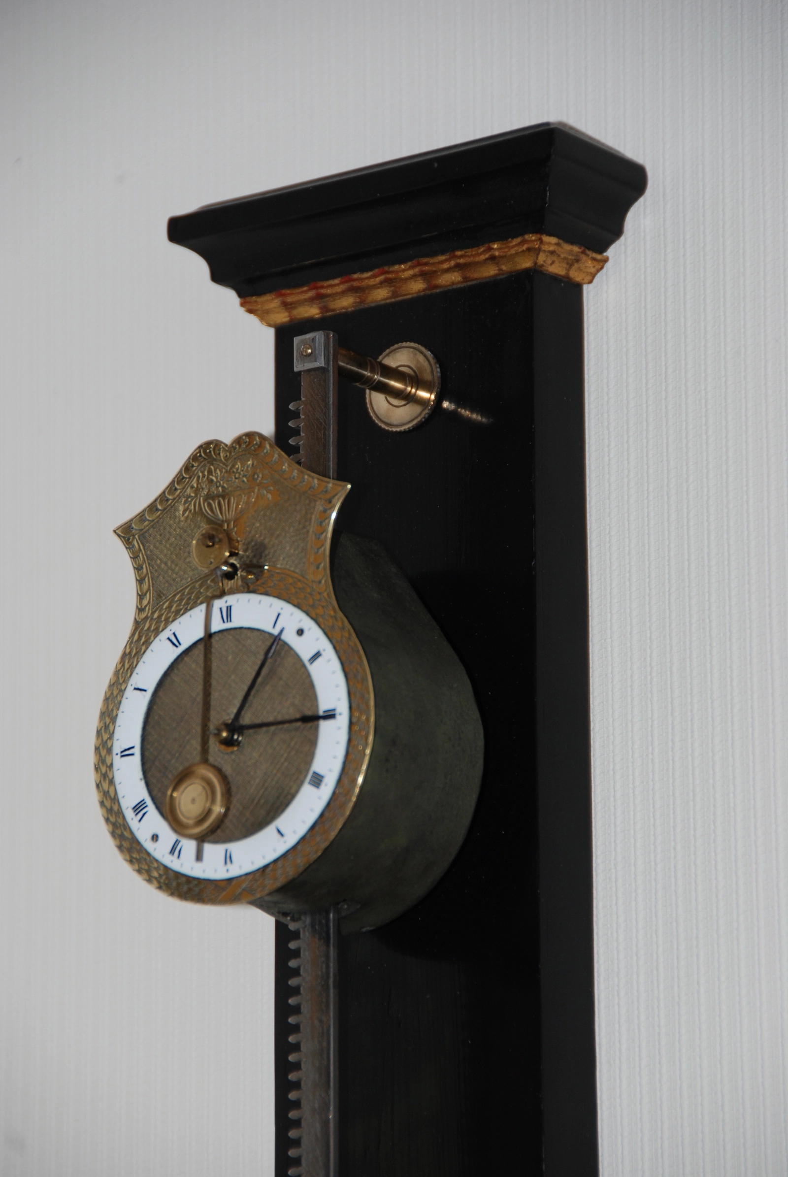 Een Weense messing zogenaamde 'Brettl' wandklok met kwartierslag, omstreeks 1835
