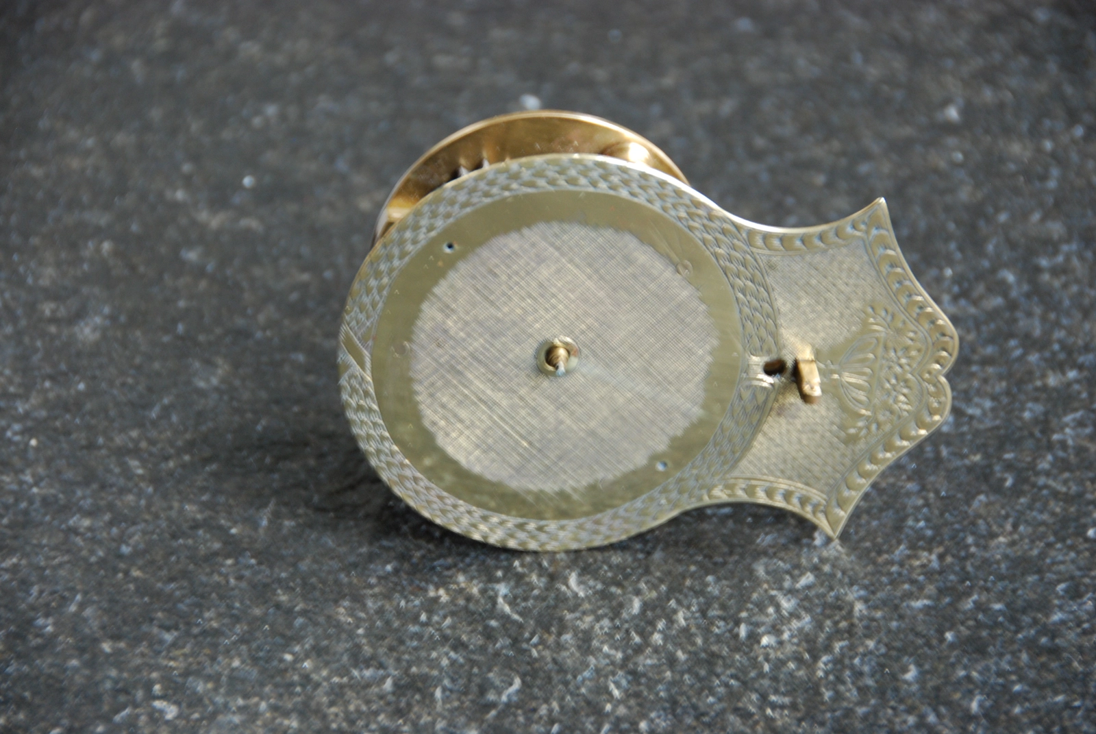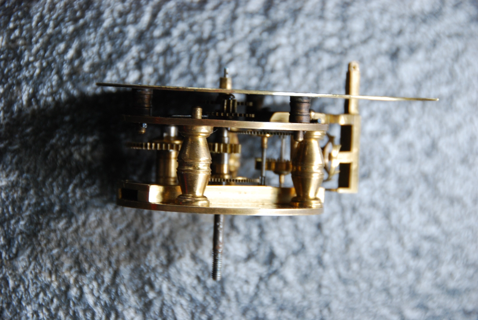 Een miniatuur Oostenrijks messing en ijzer Brettl' wandklokje, circa 1830