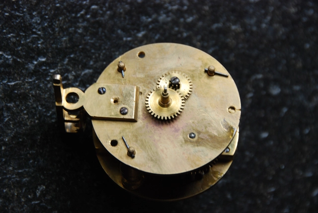W30 Zaagklok gemonteerd op een gevormde vergulde plank.