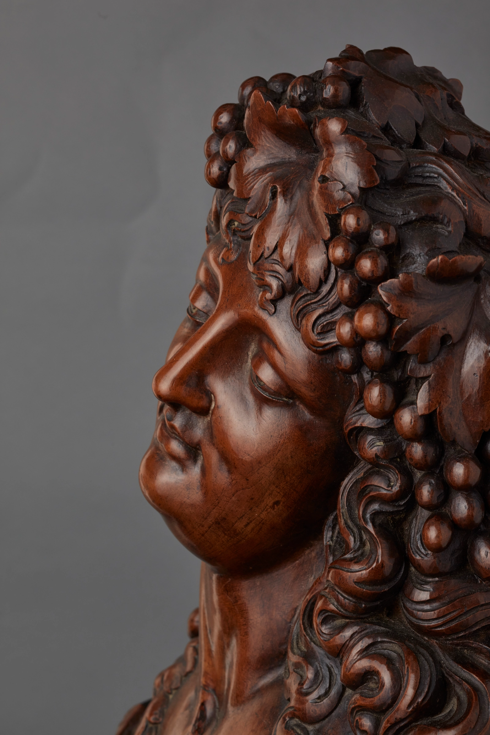A small pair of Italian highly carved walnut single candlesticks, circa 1850