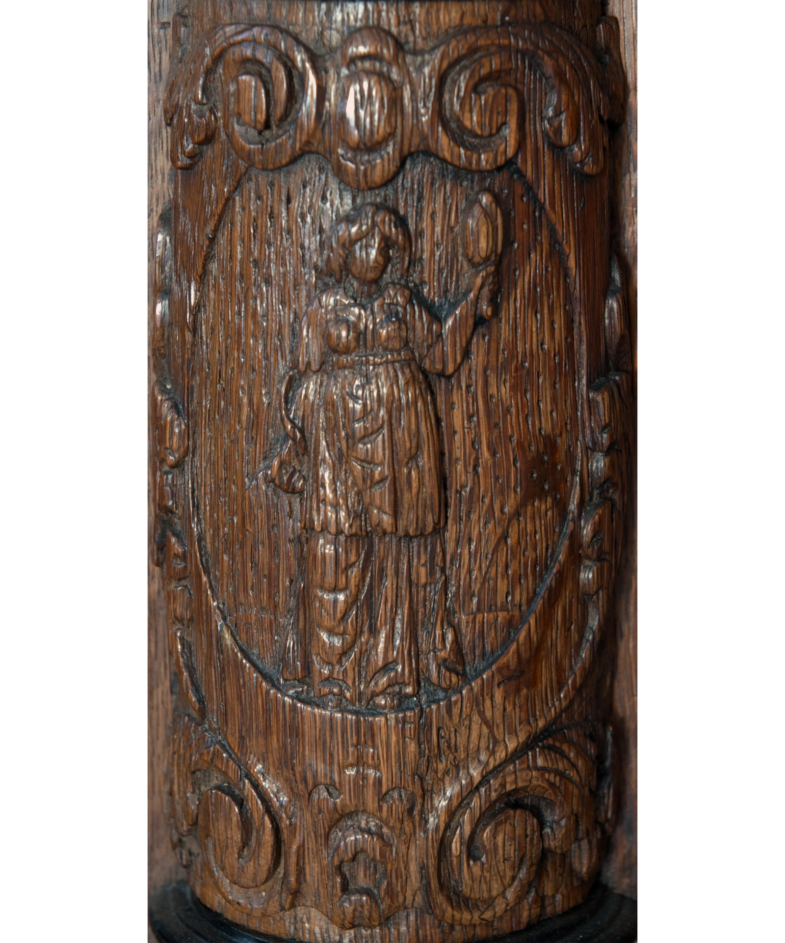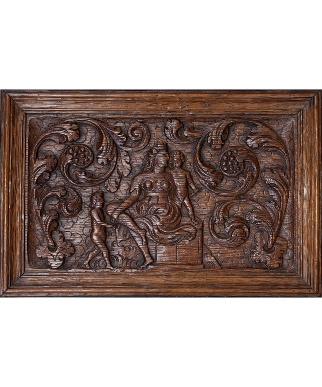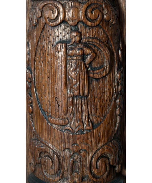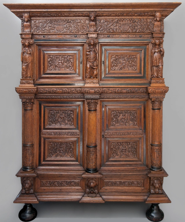 Een vierdeurskast gedecoreerd met beelden is welhaast het meest karaktervolle en rijkste meubelstuk uit de Nederlandse 17e eeuw. De in eikenhout gesneden beelden werden niet door de meubelmakers (schrijnwerkers) zelf vervaardigd maar door de daarvoor bevoegde beeldsnijders.