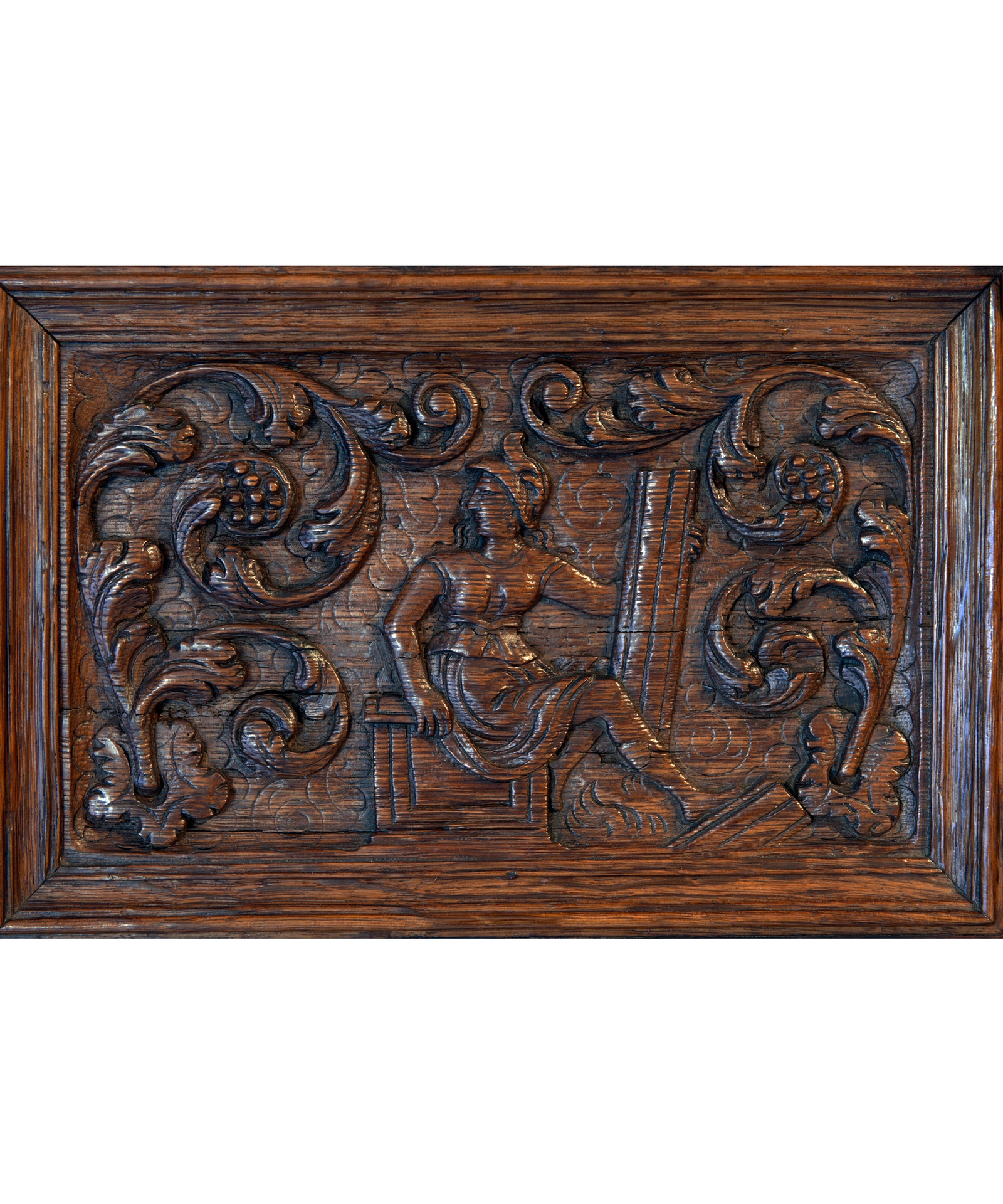 Vanwege het vele rankwerk en de vrij massieve figuren kan ervan uitgegaan worden dat deze kast rond 1640 te dateren valt.