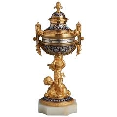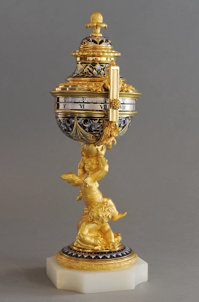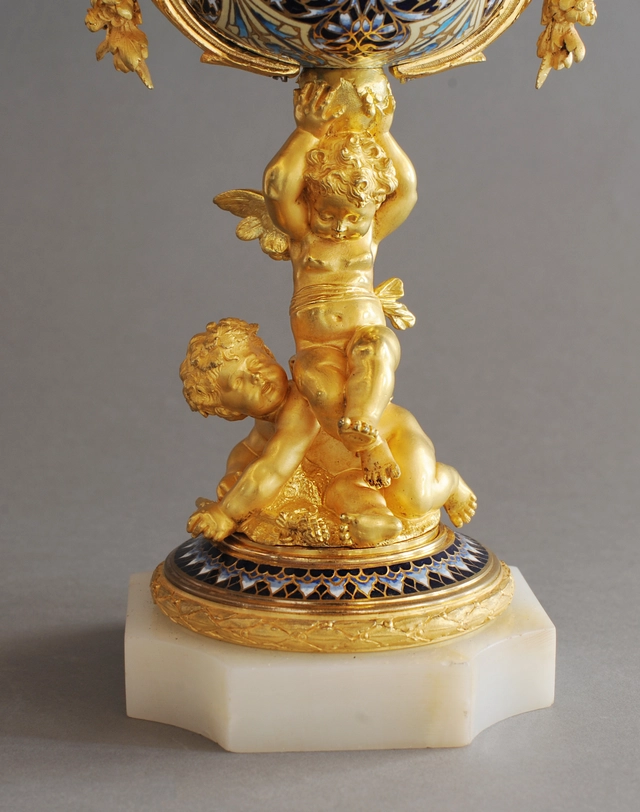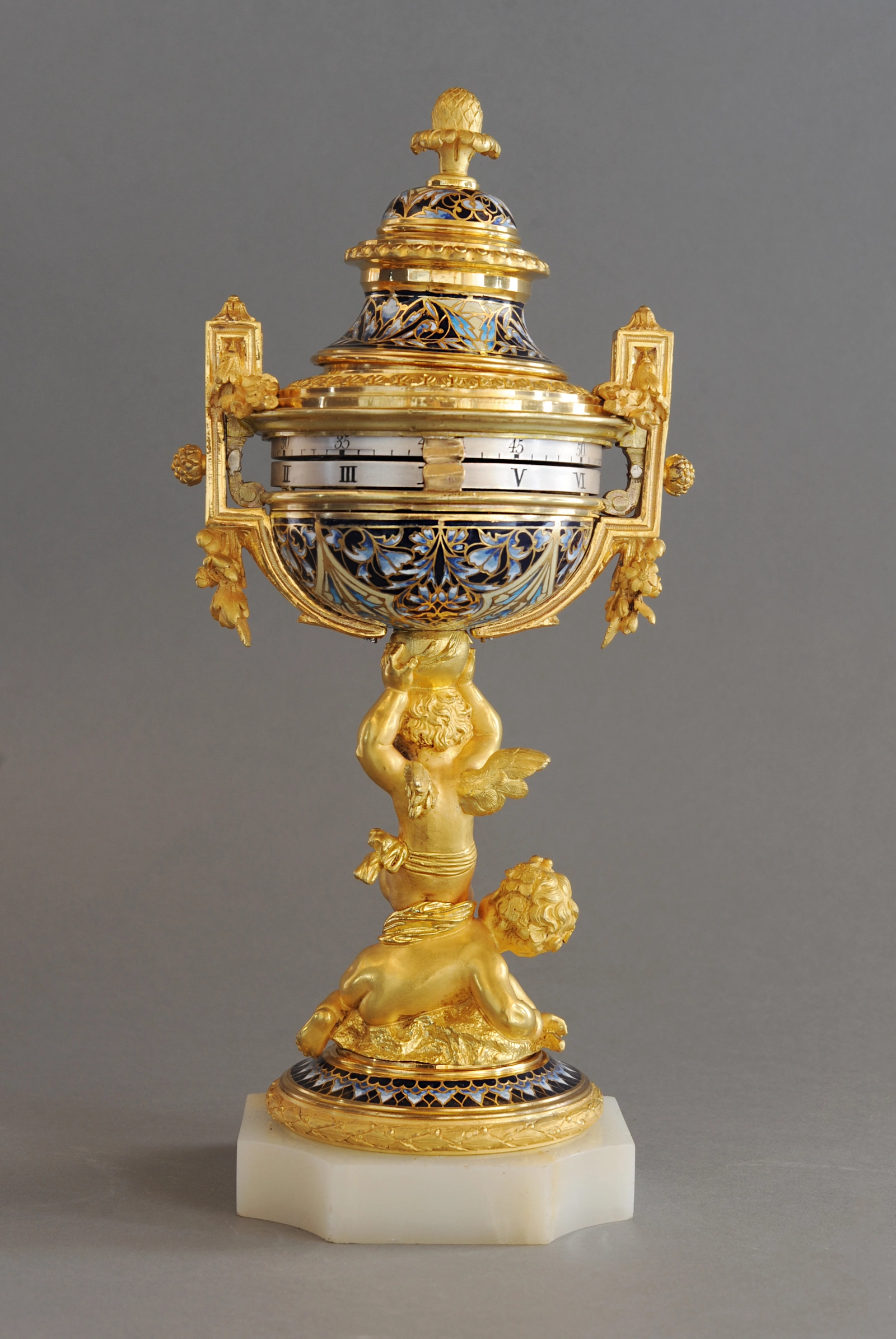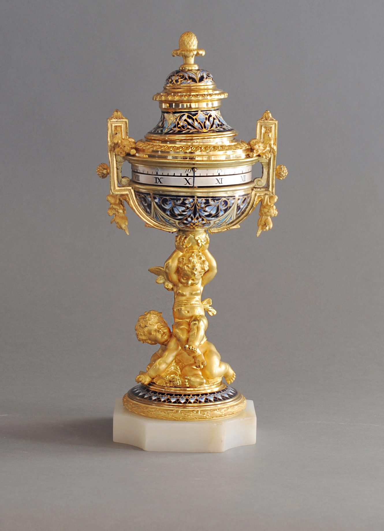 A charming probably Sevres annular dial striking urn clock, circa 1880