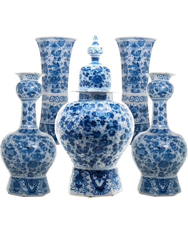 A 5-Piece Blue and White Dutch Delft Garniture