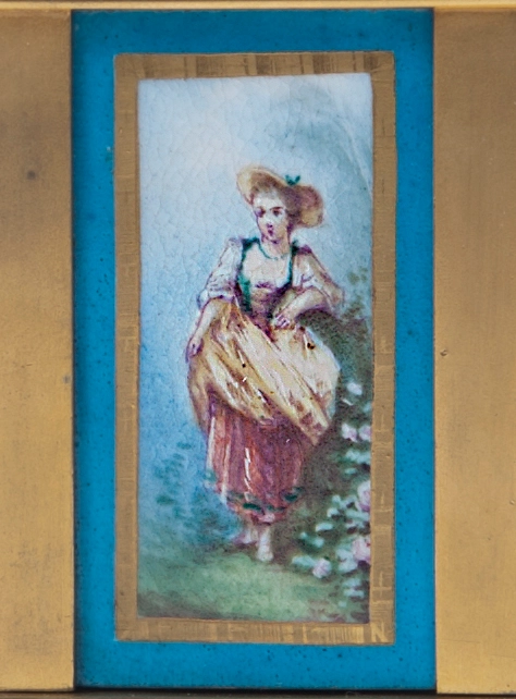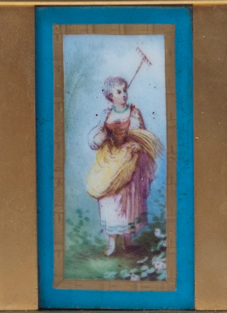 An attractive French brass Sèvres porcelain mounted mantel clock with perpetual calendar, circa 1880