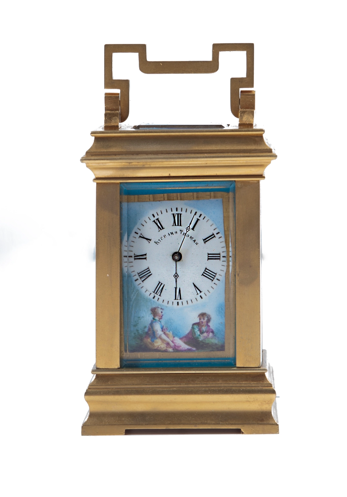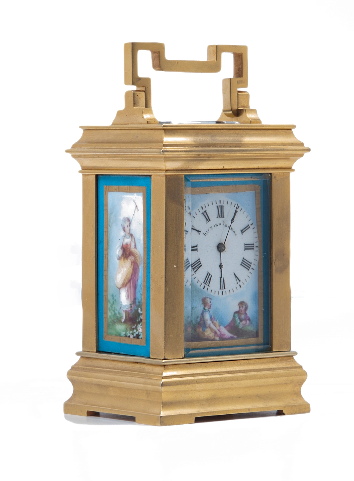 A French gilt brass carriage clock with rare blue enamel dials in Anglaise case, circa 1890