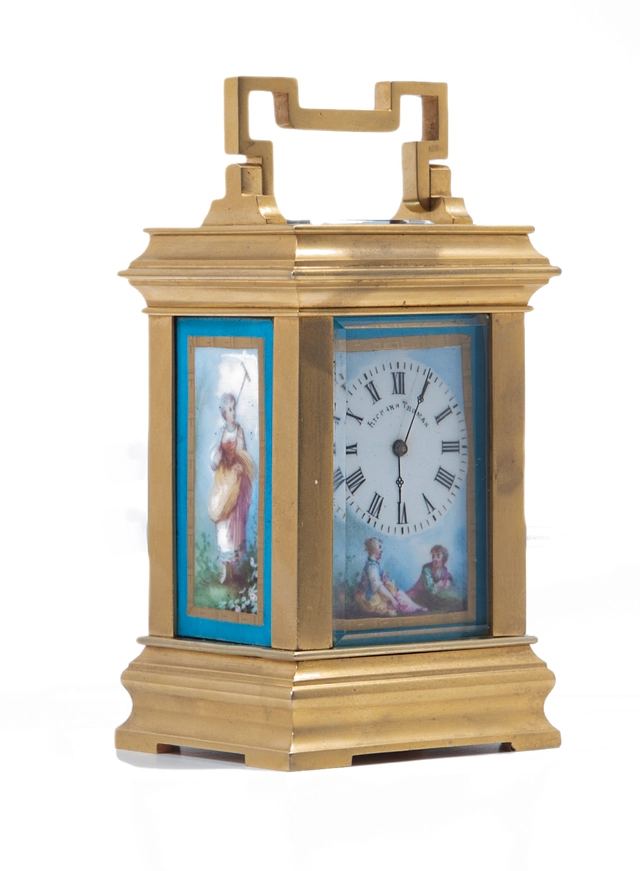 A fine French gilt brass, quarter repeating, corge case carriage clock, circa 1880